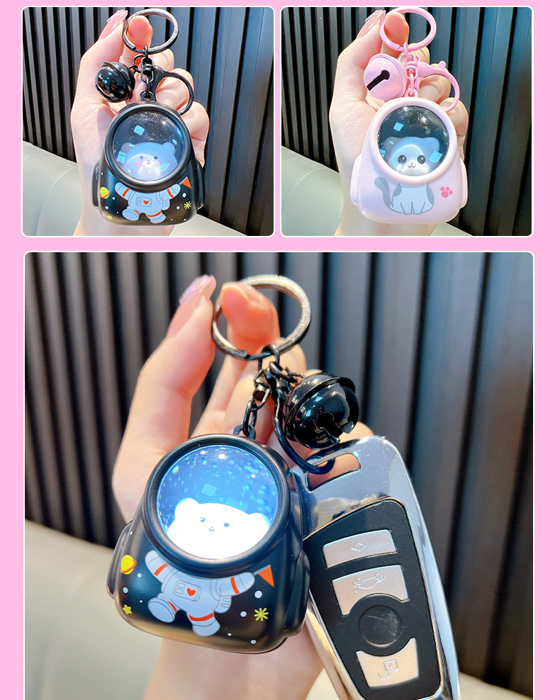 빛나는 야간 조명 키 체인 배낭 우주 비행사 열쇠 고리 펜던트 귀여운 발톱 기계 작은 선물 펜던트 도매