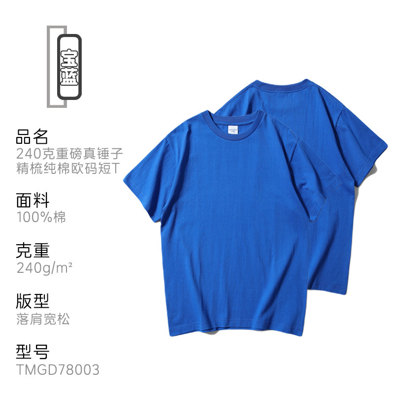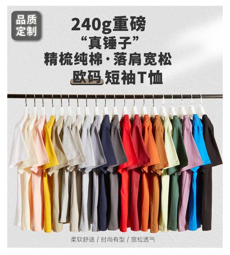 240g 국경 간 유럽 사이즈 반팔 문화 셔츠 로고 순수 코튼 아메리칸 티셔츠 남성 맞춤형 트렌디 브랜드 반팔 남성 자수 그림스토어 가기