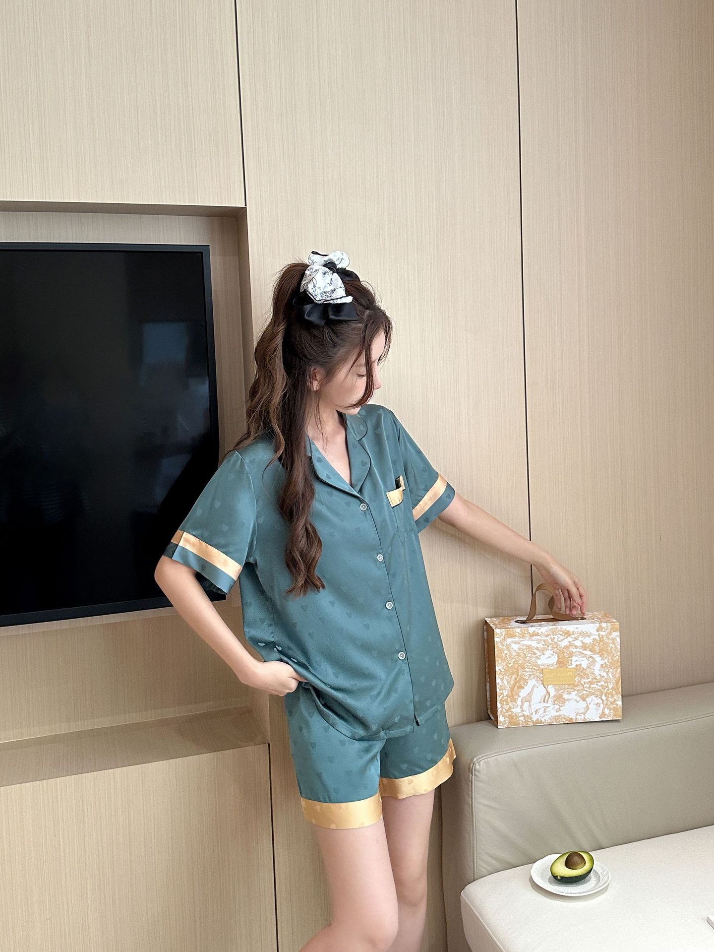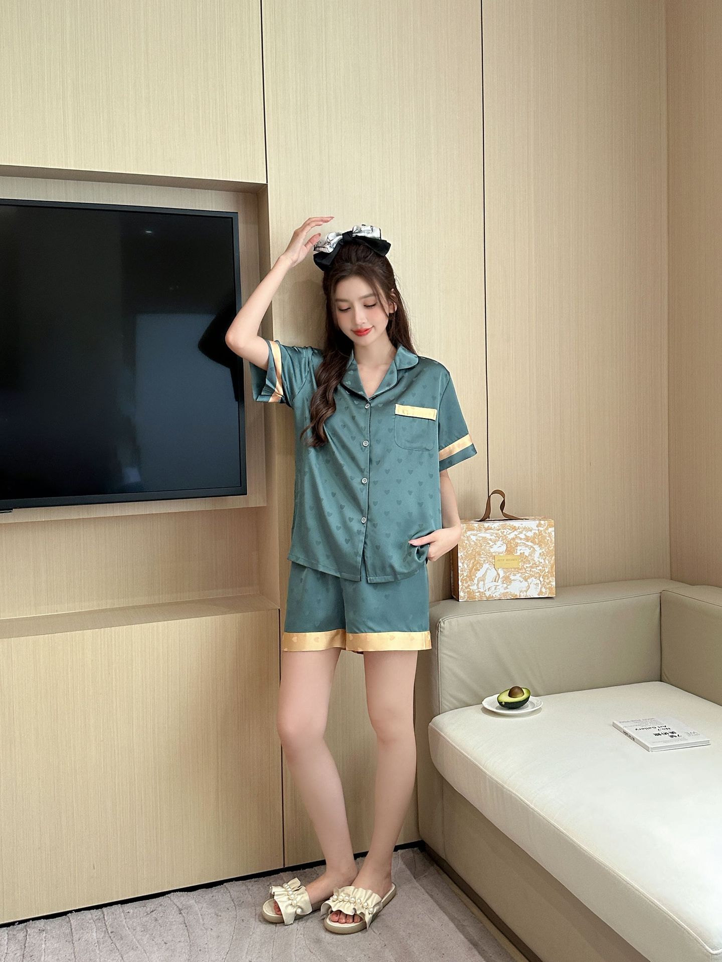 아이스 실크 파자마 여성 여름 반팔 반바지 TikTok 새로운 하이 엔드 센스 여성 사랑 여성 홈 의류 987