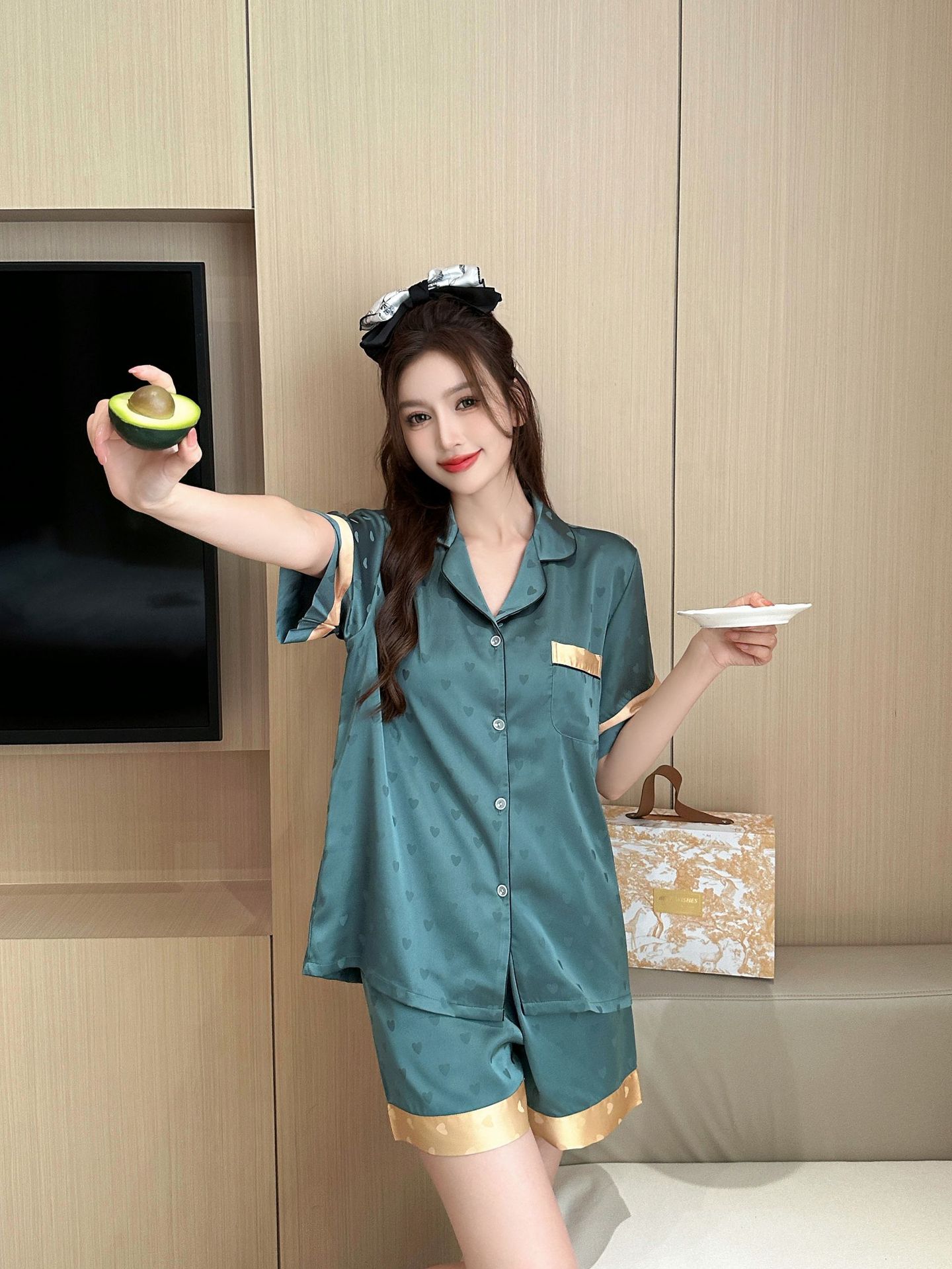 아이스 실크 파자마 여성 여름 반팔 반바지 TikTok 새로운 하이 엔드 센스 여성 사랑 여성 홈 의류 987스토어 가기