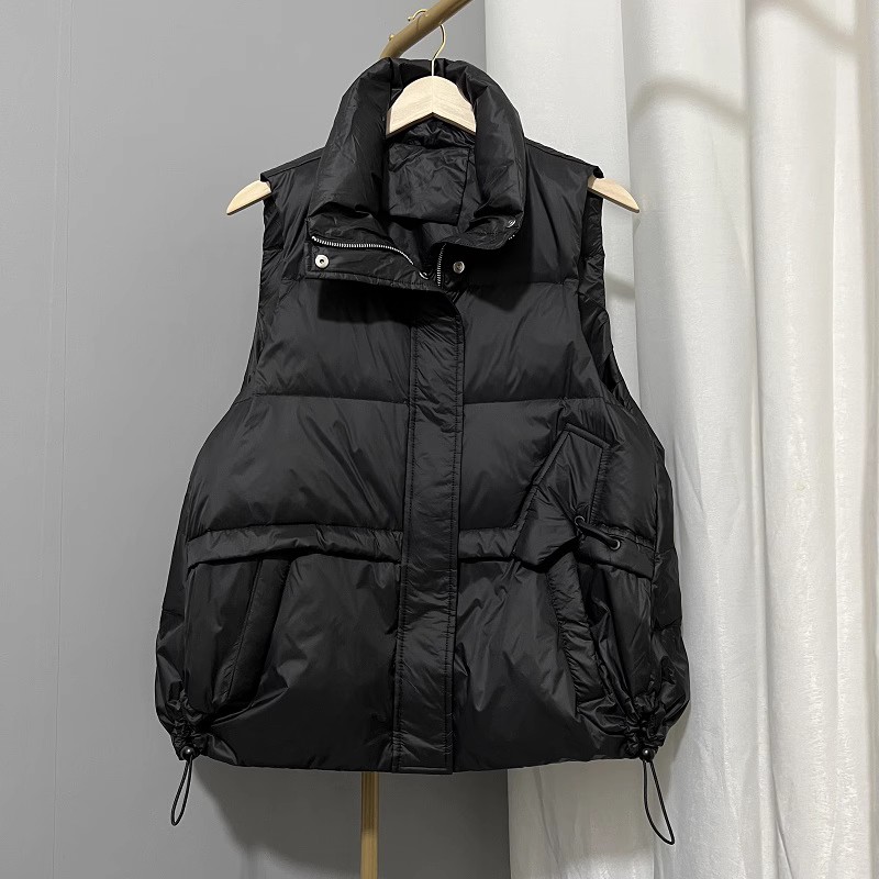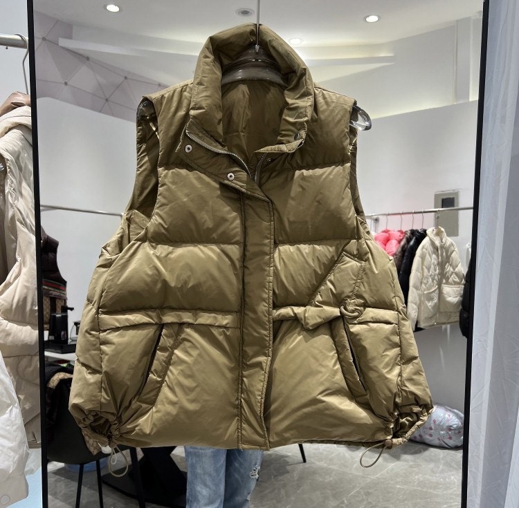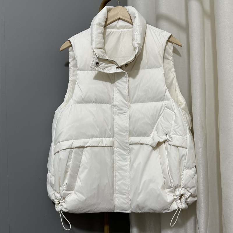 2024 봄과 가을 조끼 여성 스탠드 칼라 느슨한 패션 화이트 오리 다운 조끼 따뜻한 코트 조끼 슬리밍스토어 가기