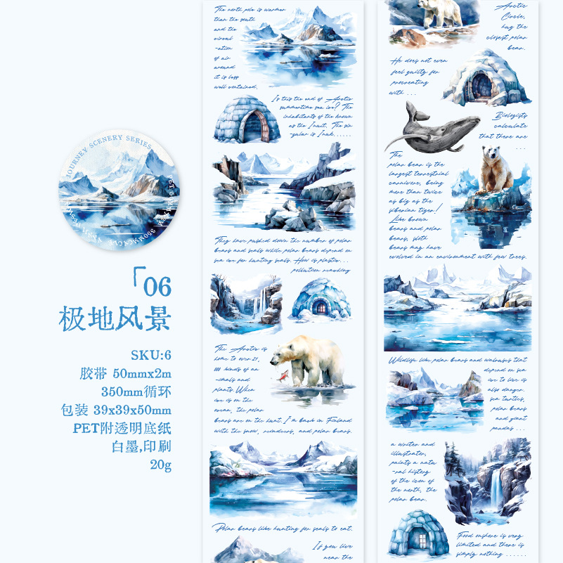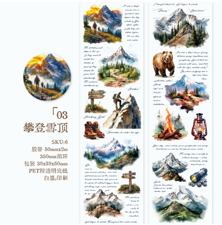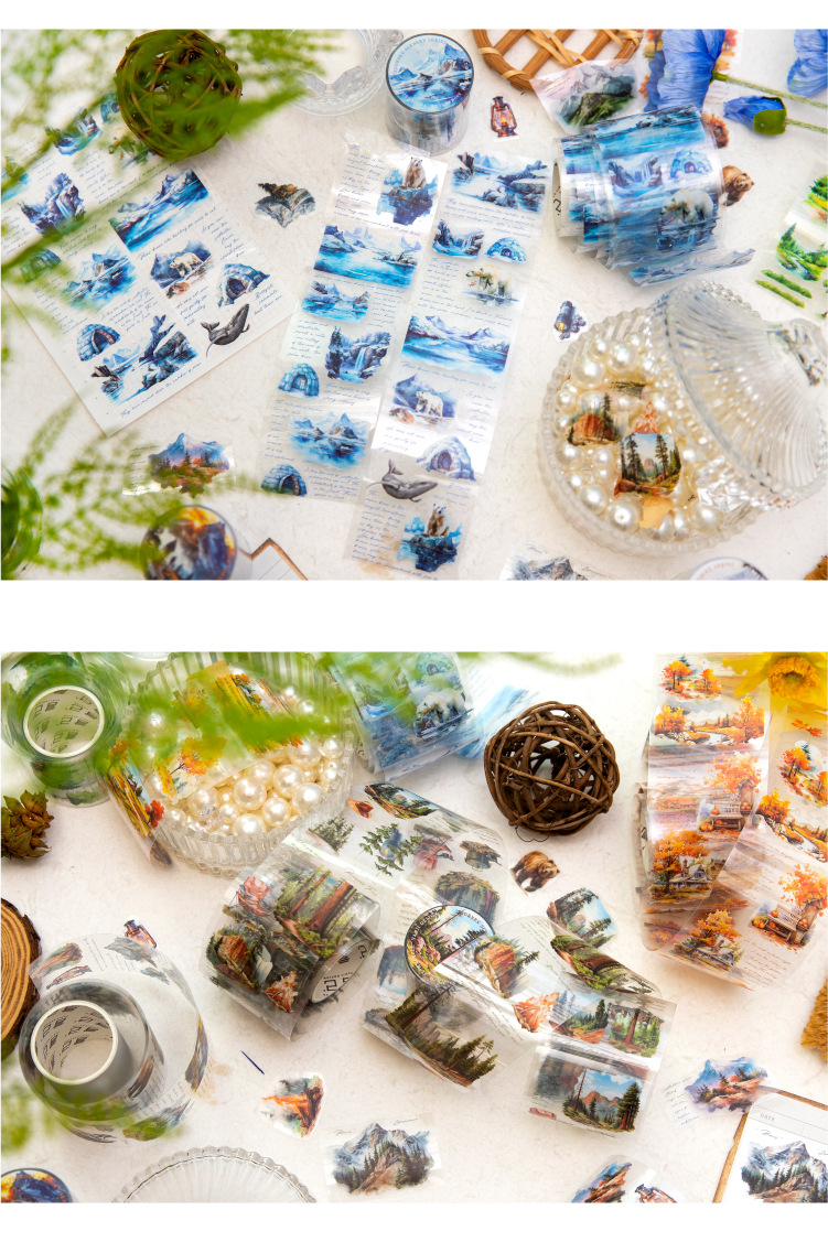 얀지의 여행 빈티지 숲 풍경 저널 소재 장식 PET 방수 스티커 풍경 시리즈 테이프