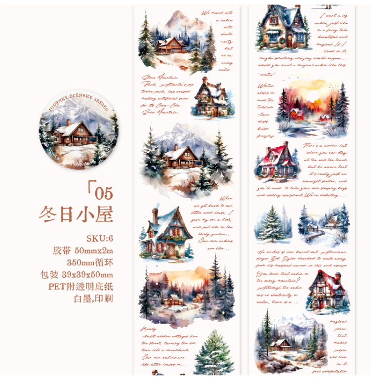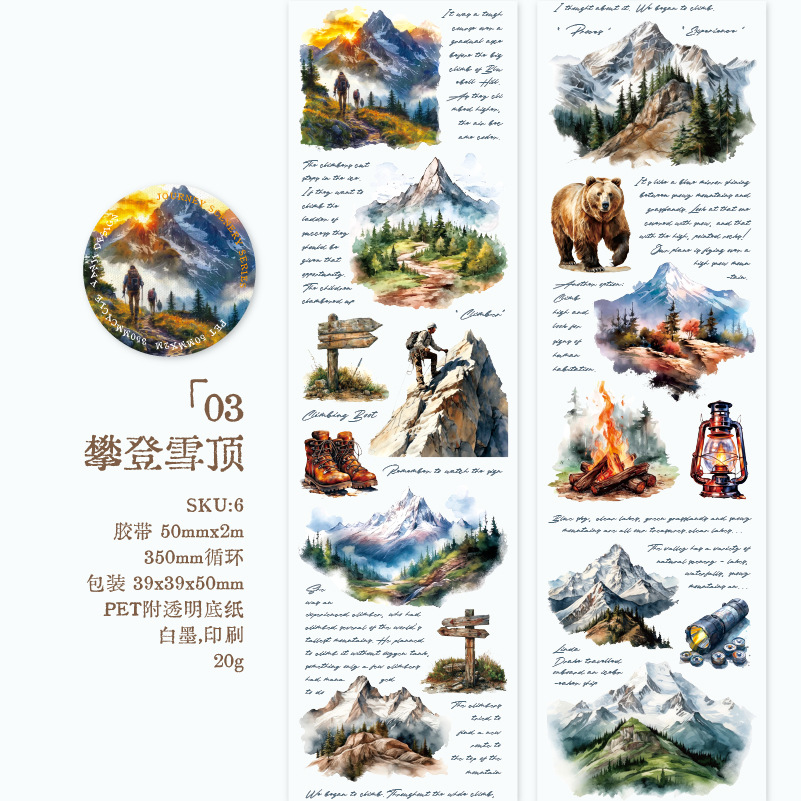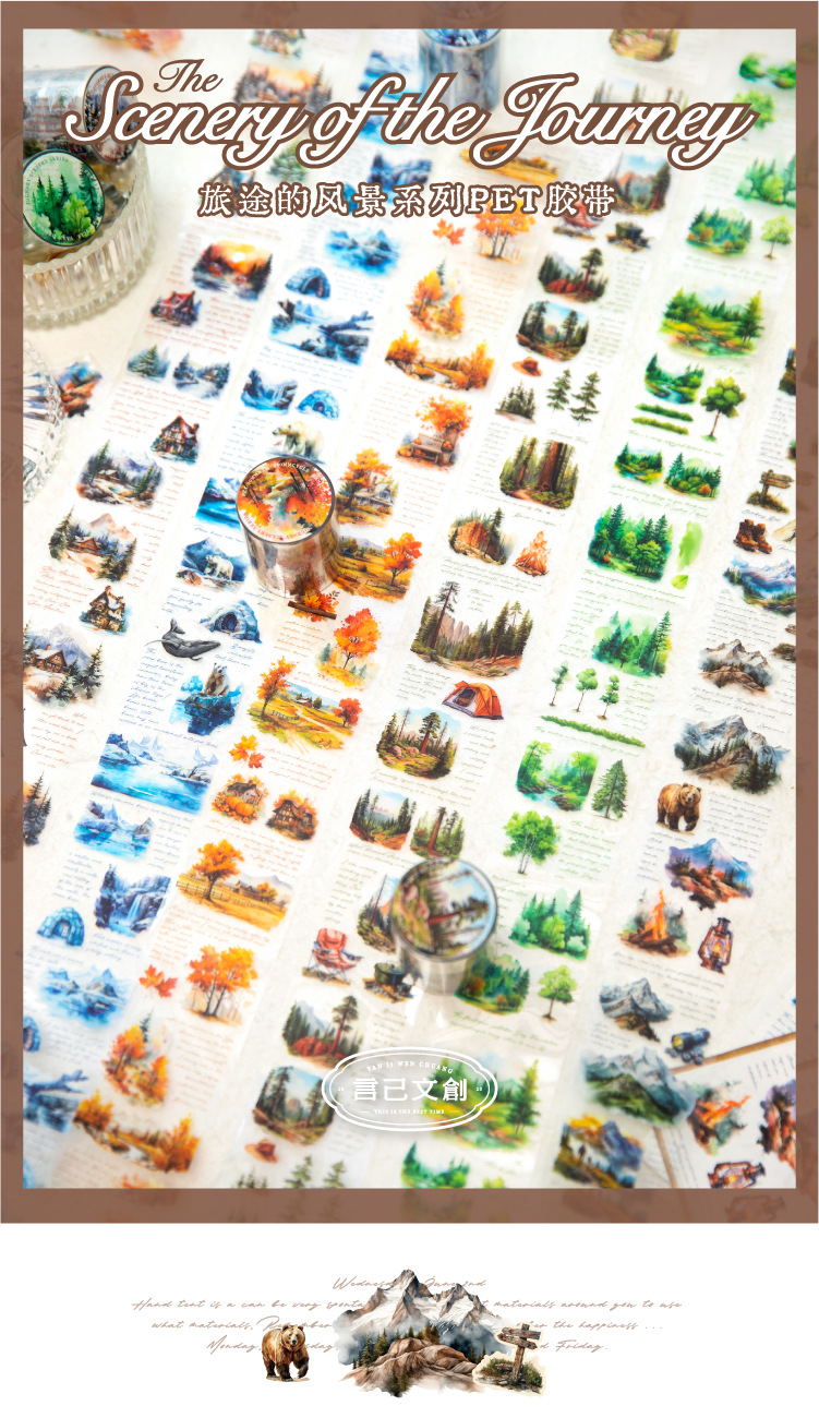 얀지의 여행 빈티지 숲 풍경 저널 소재 장식 PET 방수 스티커 풍경 시리즈 테이프스토어 가기