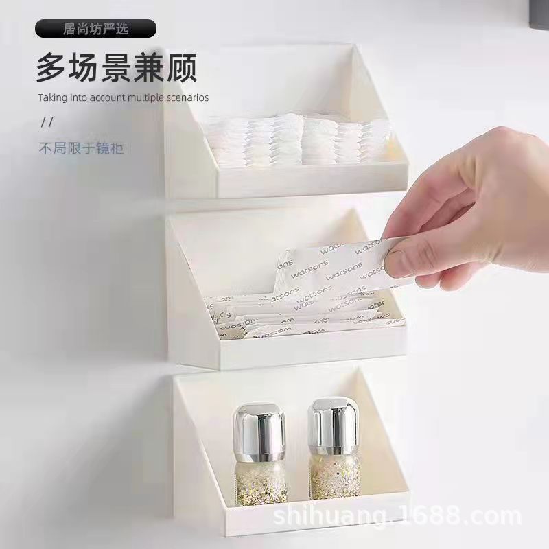 욕실 거울 캐비닛 보관 상자 벽걸이 형 펀치 프리 가정용 세면대 화장품 미용 접촉 제거제 면 보관 랙
