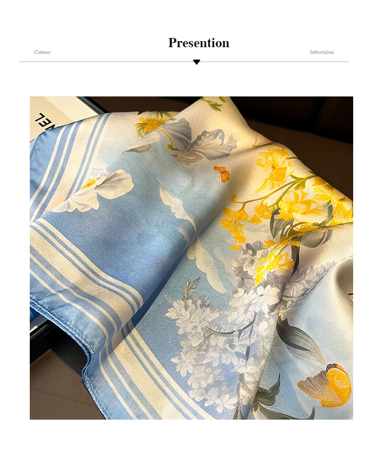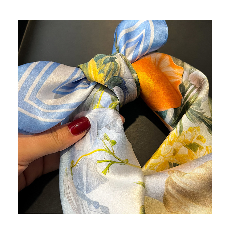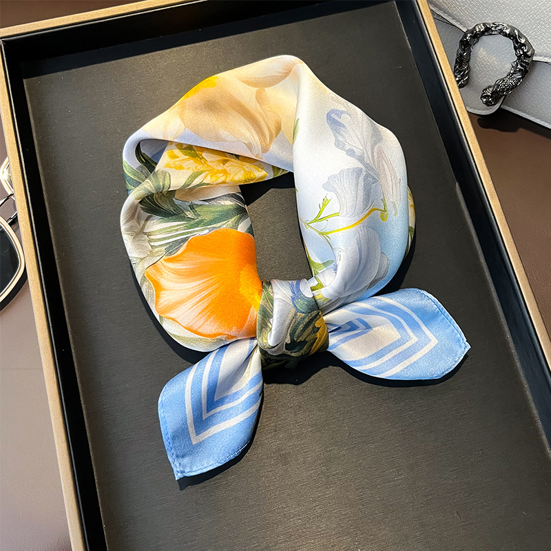 항주 실크 작은 사각형 스카프 실크 크레이프 새틴 프린트 스카프 스카프 예술적 꽃 장식 스카프스토어 가기