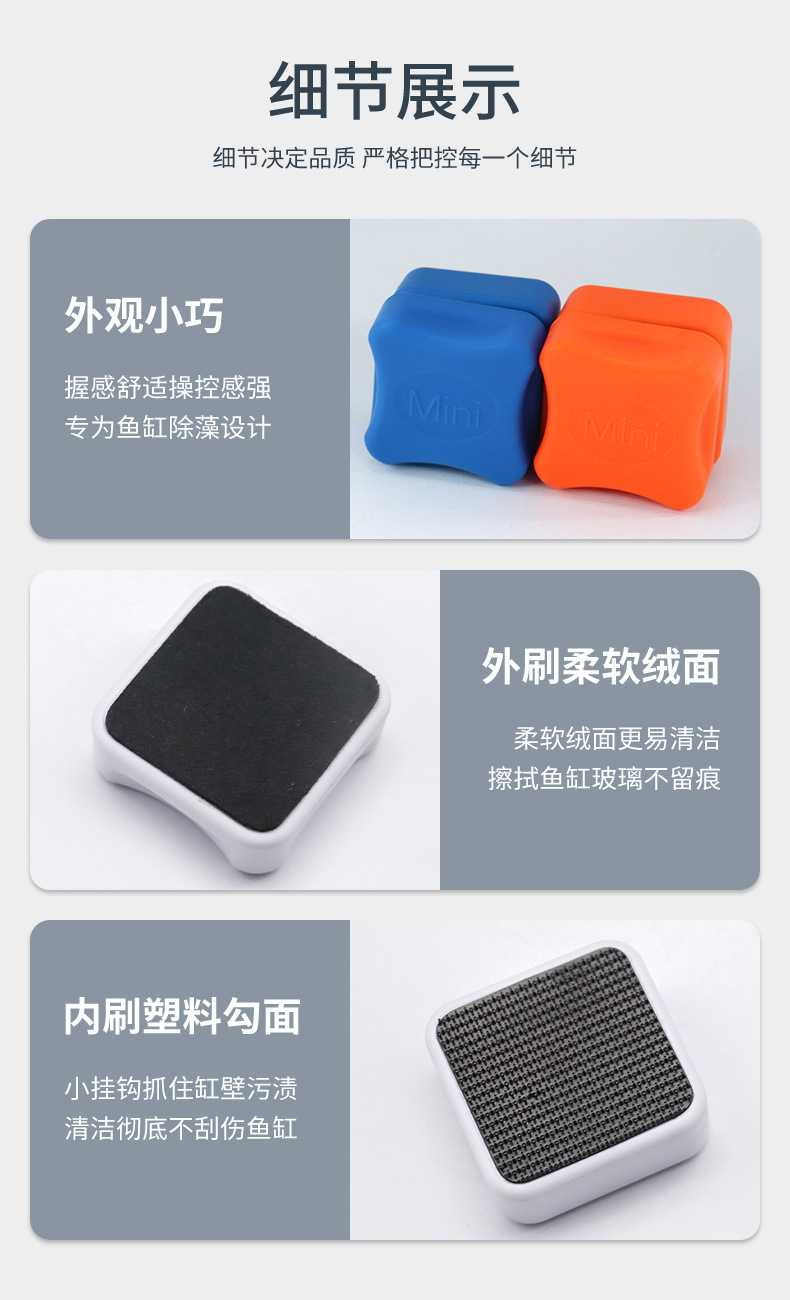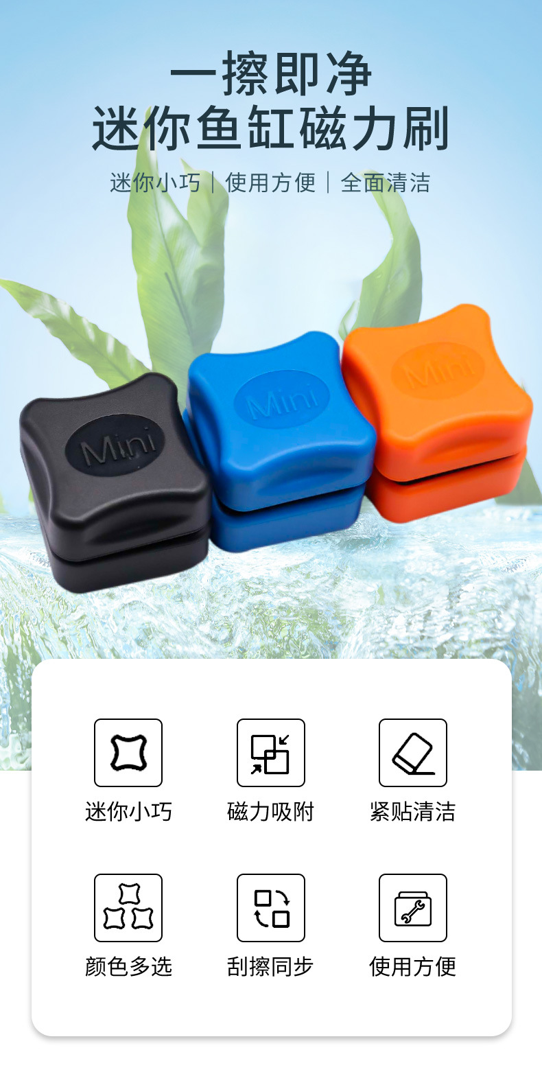 국경 어항 브러시 마그네틱 브러시 유리 청소 도구 긁는 조류 칼 미니 강한 자기 청소 브러시 청소 유물