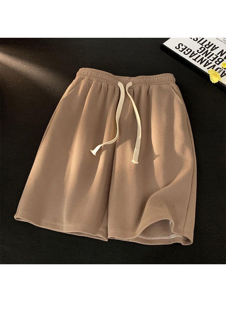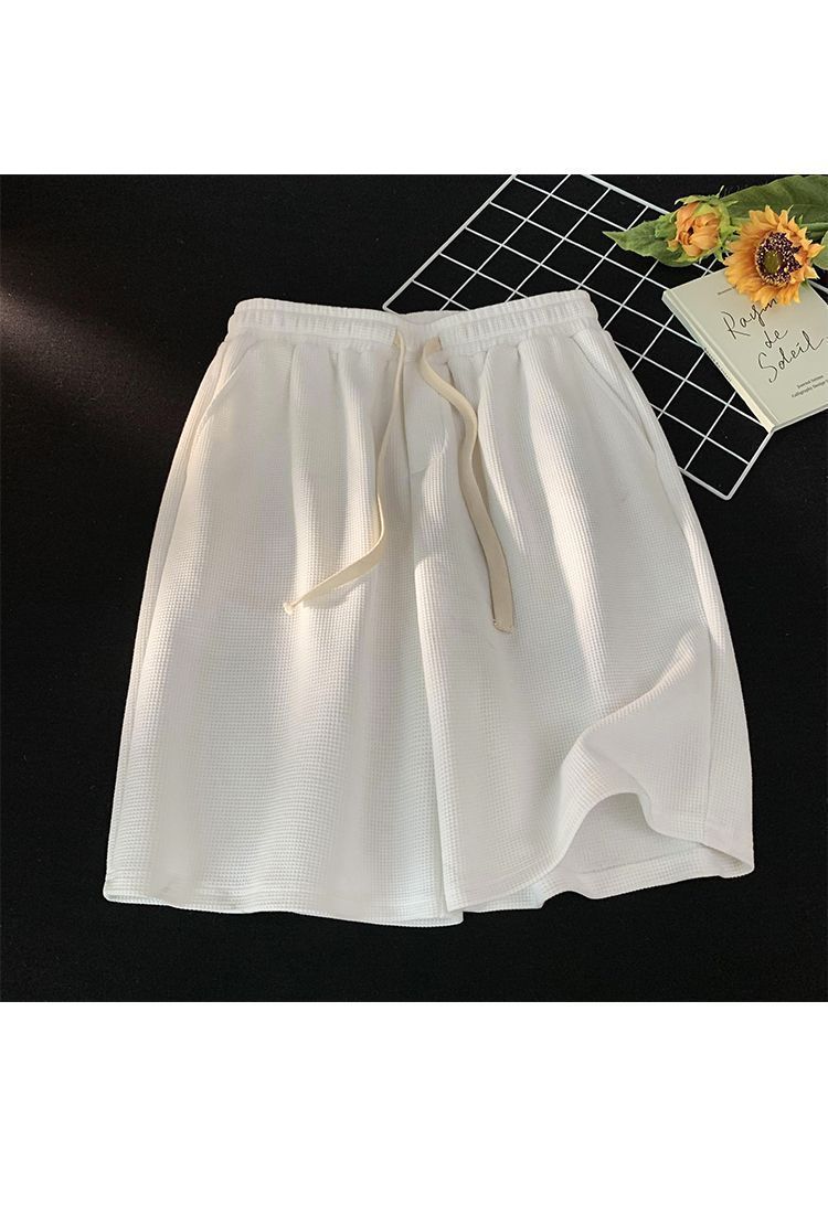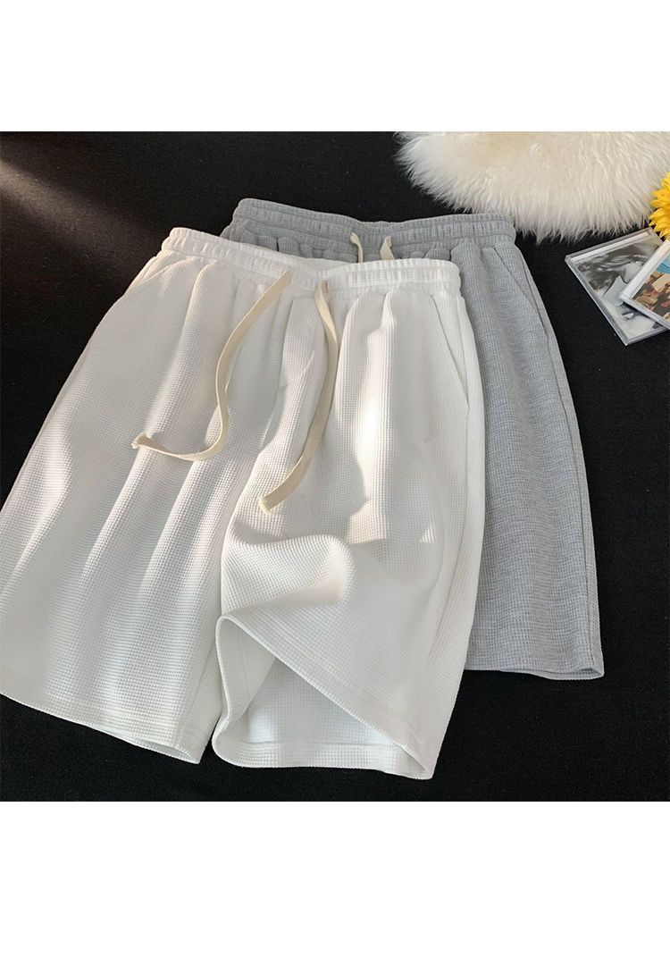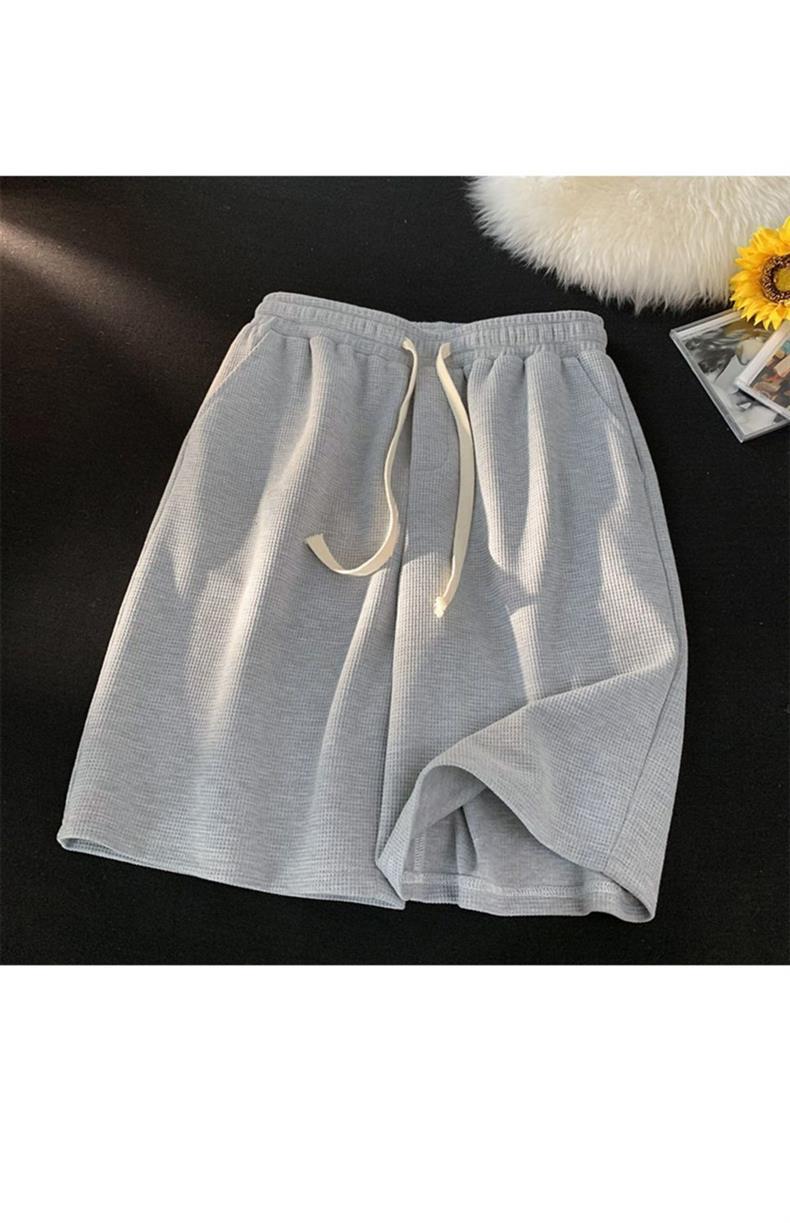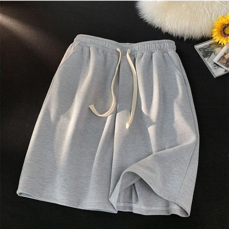 한국식 트렌디 한 와플 반바지 남성 여름 새로운 느슨한 커플 스포츠 캐주얼 청소년 반바지