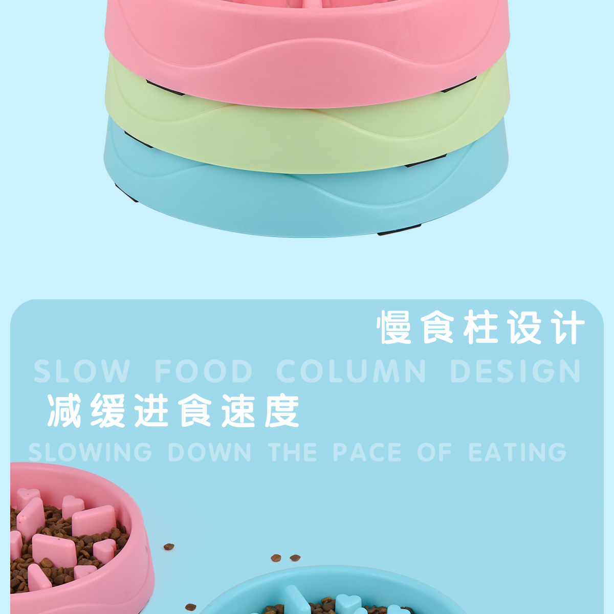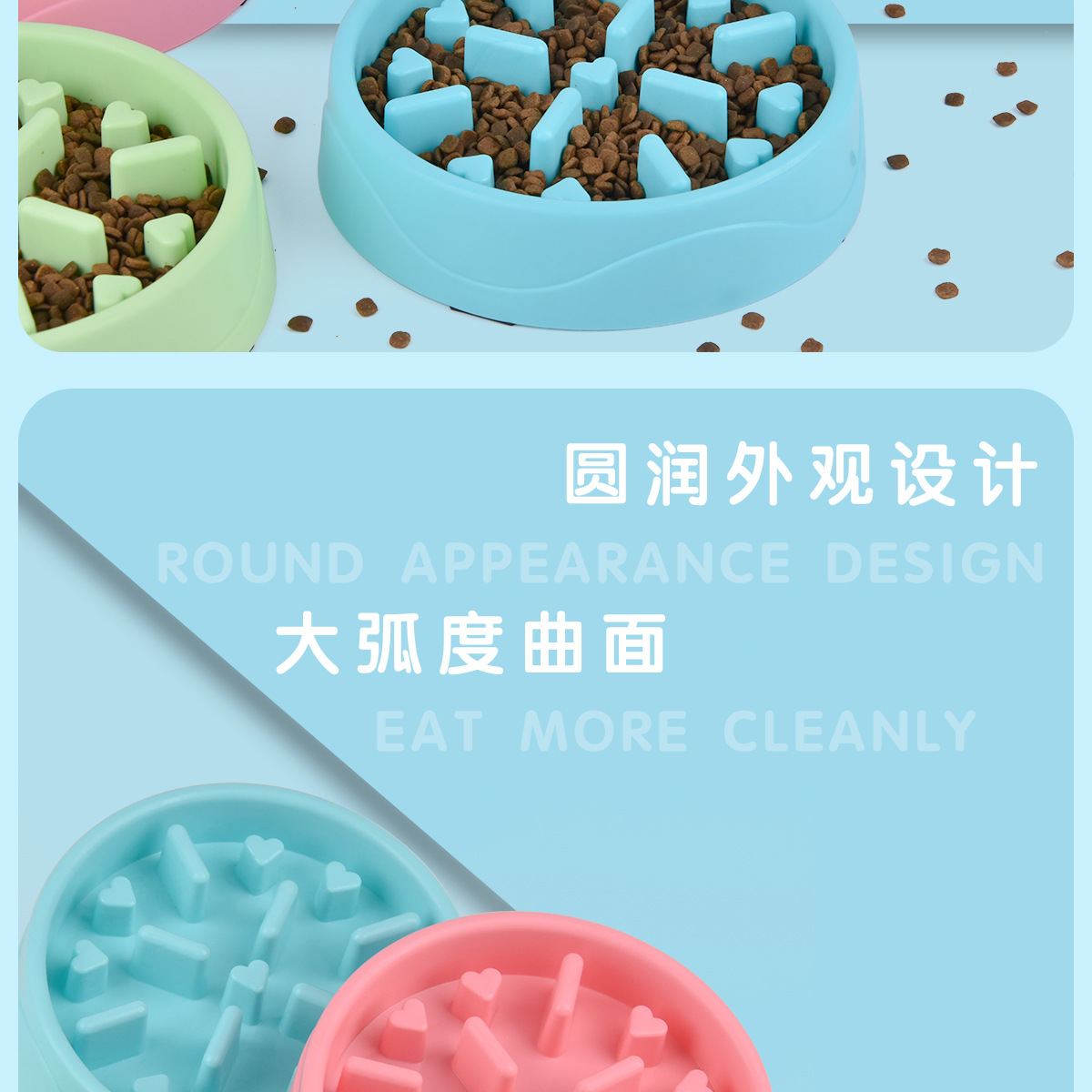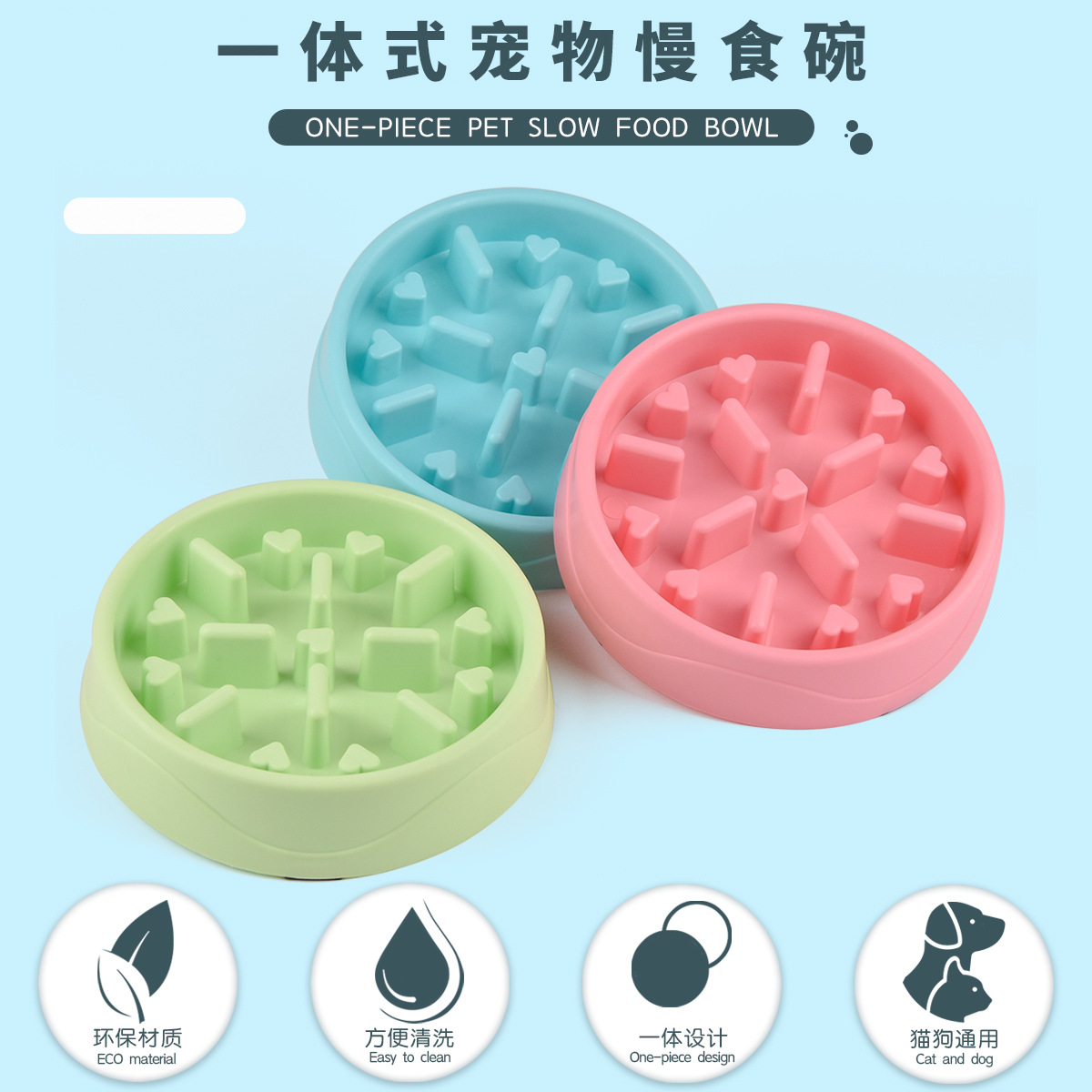 애완 동물 슬로우 푸드 안티 초크 슬로우 푸드 사발 고양이와 개밥 그릇 고양이와 개 사발 안티 초크 슬로우 푸드 보울 안티 노크 간단한 플라스틱 그릇 배치