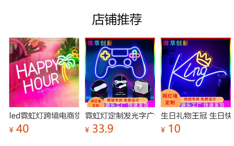 LED 네온사인 전자상거래 발광 문자 모양 투명 백플레이트 네온사인 간판 장식등