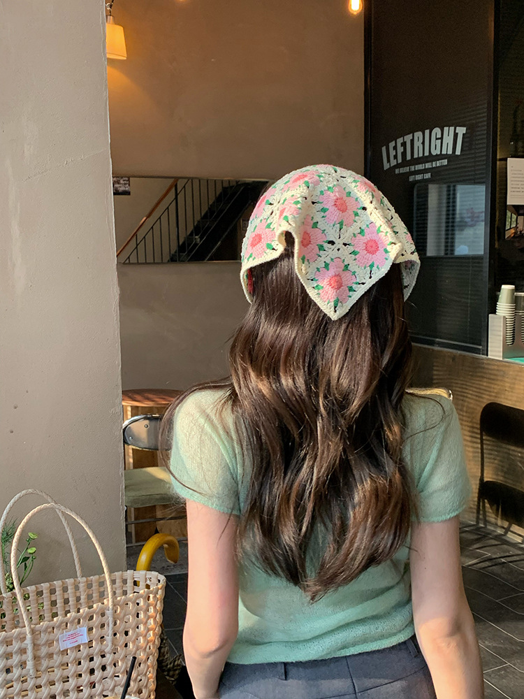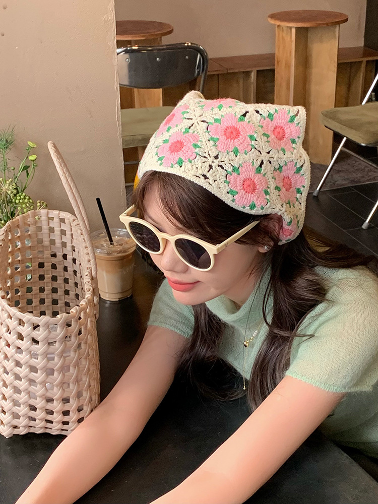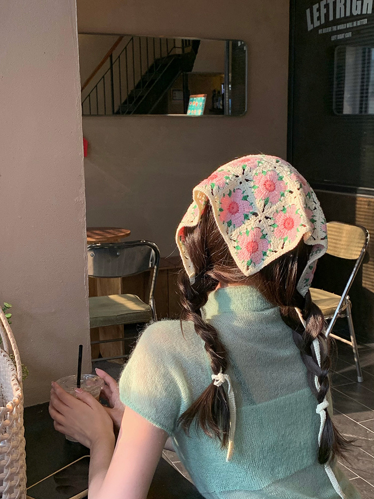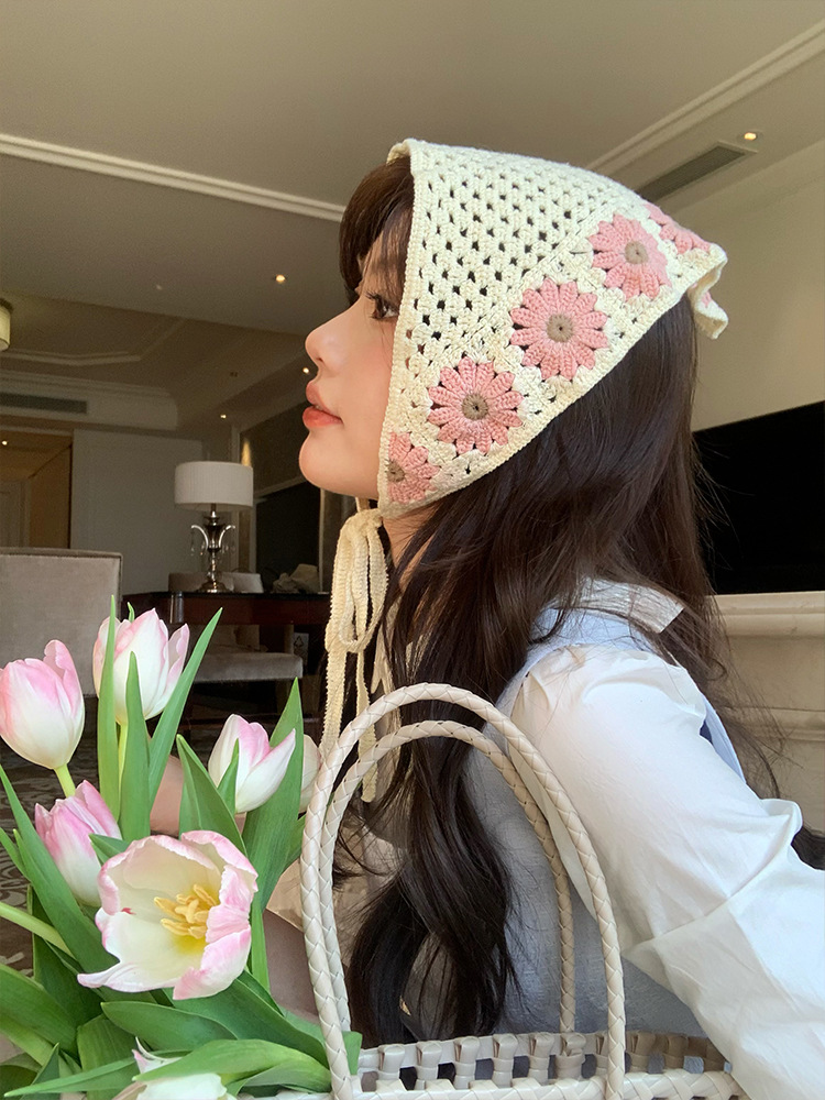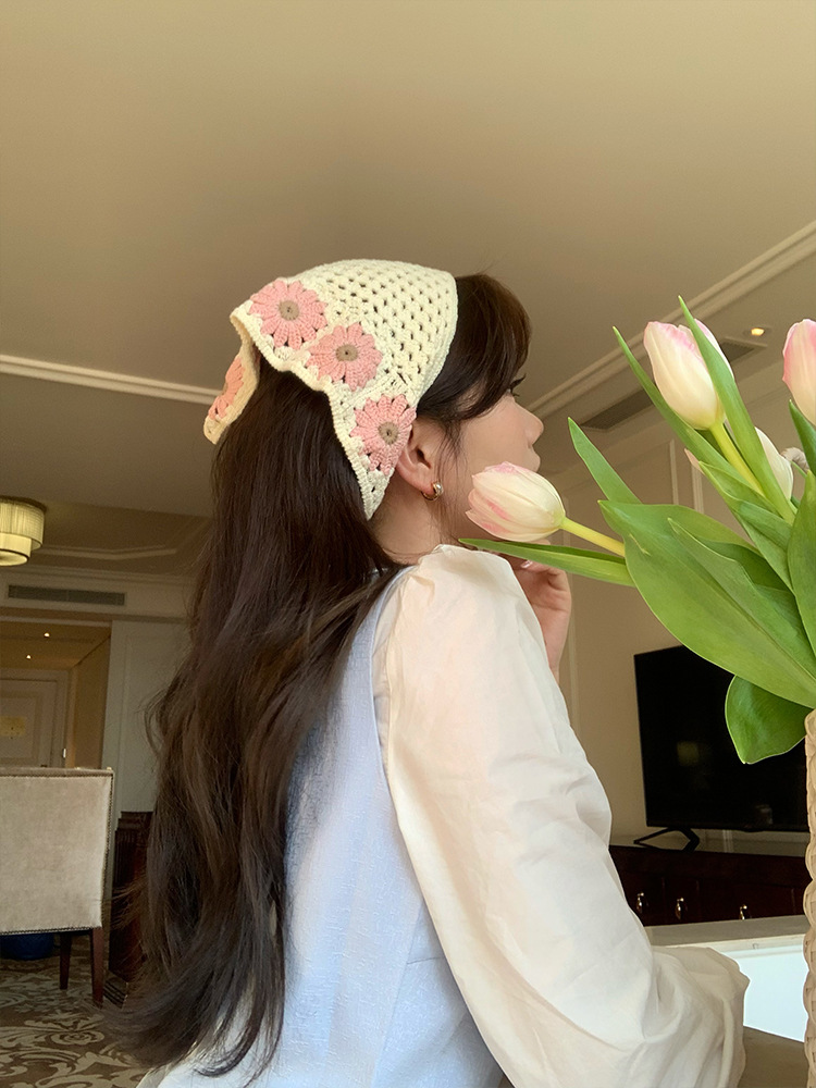 해변 휴가 여행 사진 니트 뜨거운 소녀 머리 스카프 여성 발가락 패션 프랑스 복고풍 꽃 삼각형 스카프 헤어 벨트스토어 가기