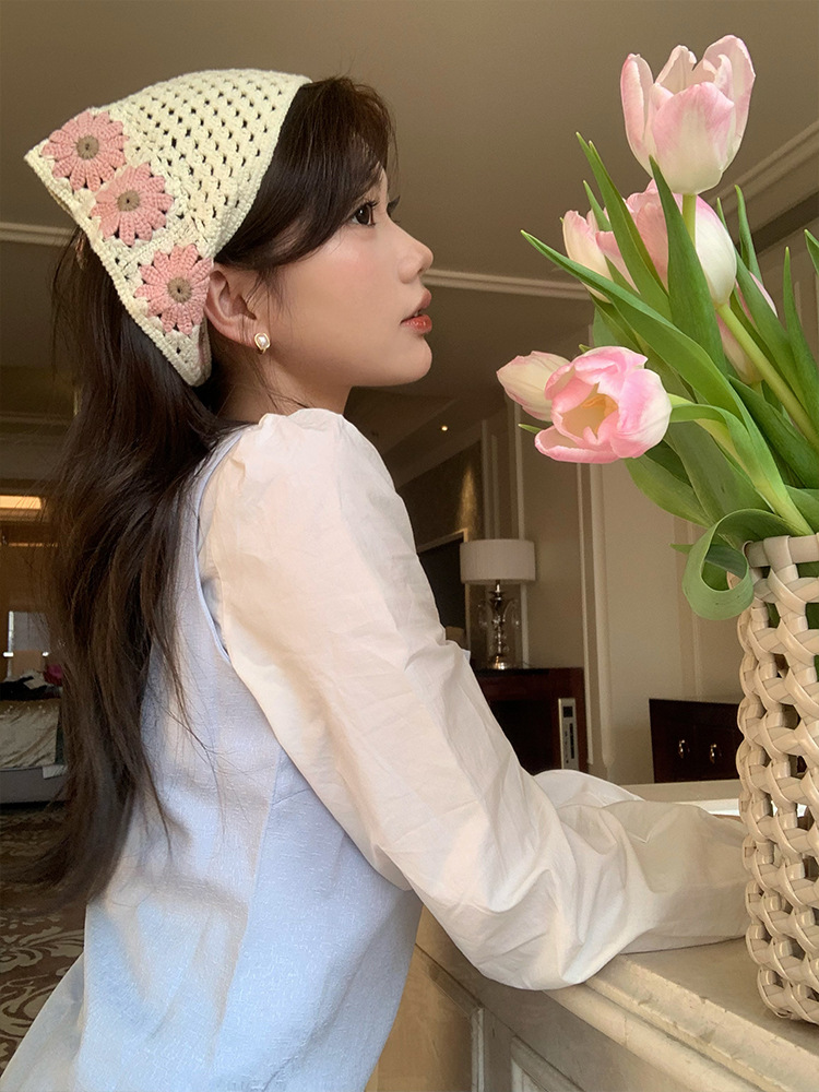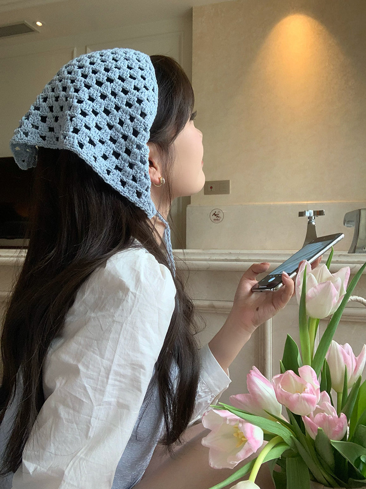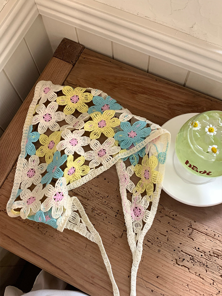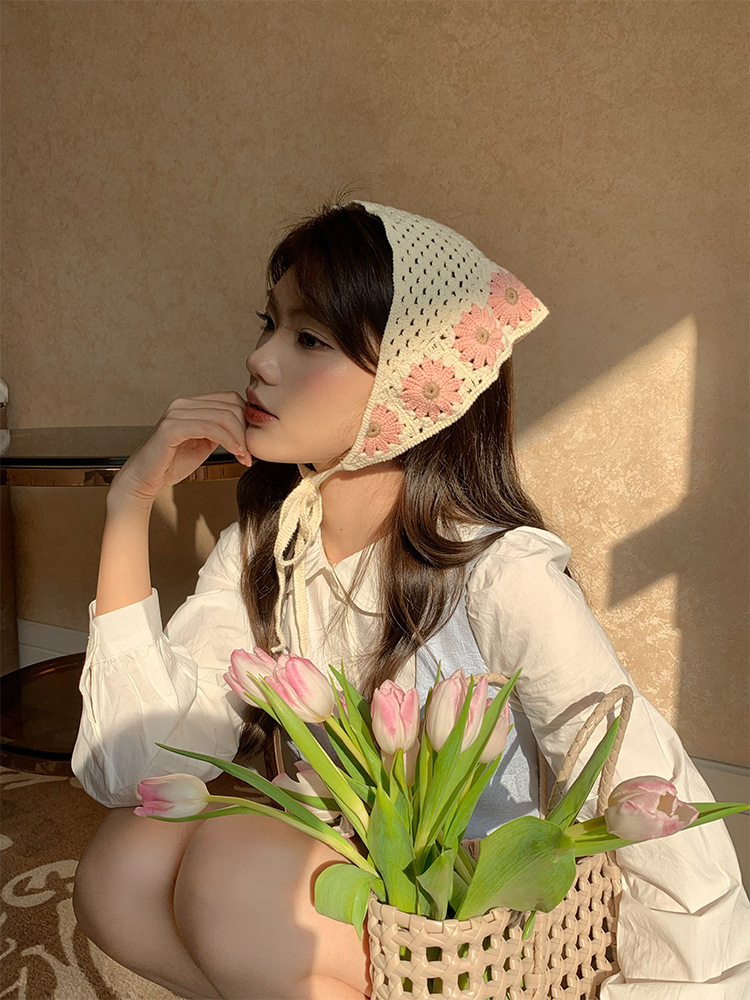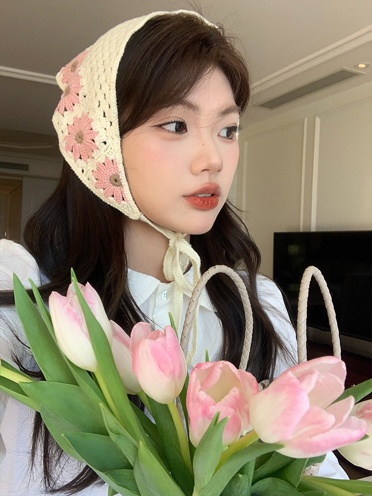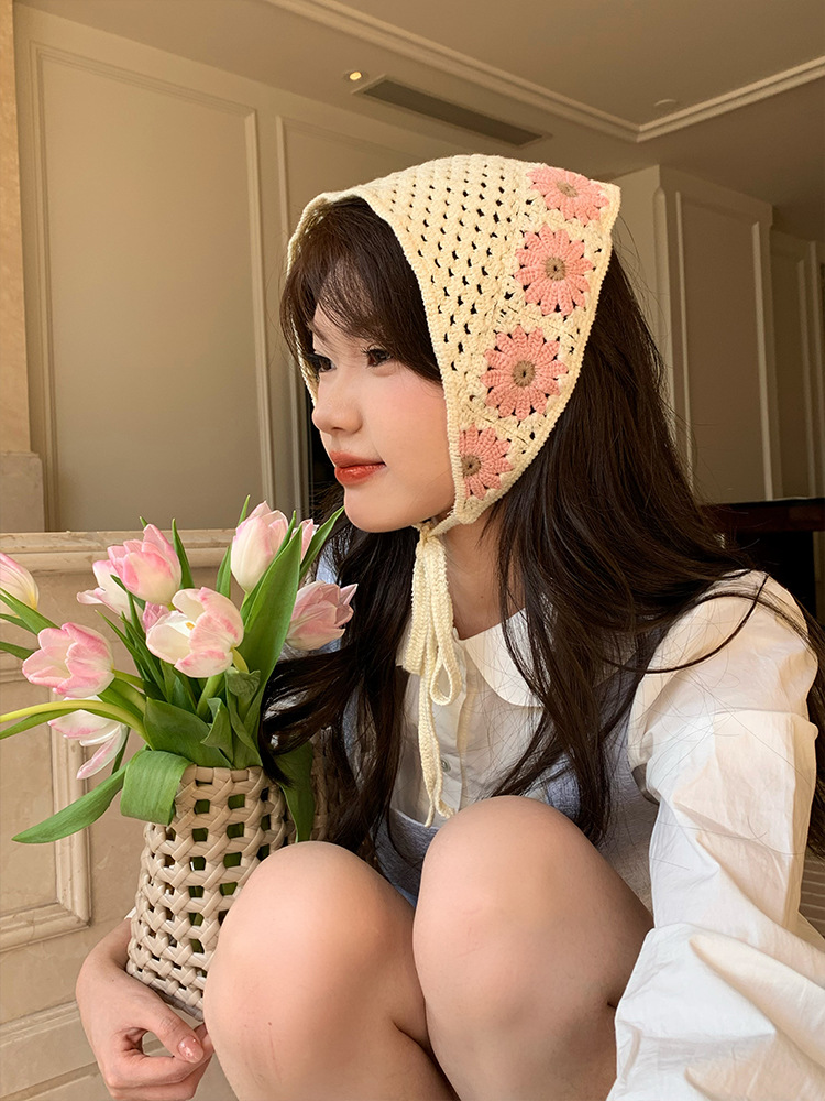 해변 휴가 여행 사진 니트 뜨거운 소녀 머리 스카프 여성 발가락 패션 프랑스 복고풍 꽃 삼각형 스카프 헤어 벨트스토어 가기