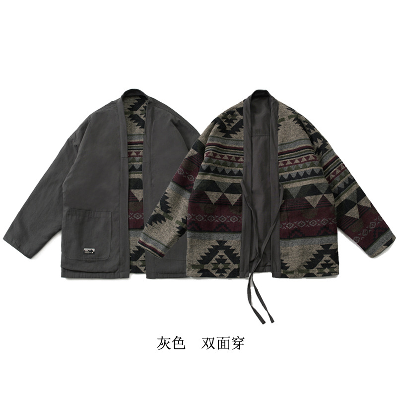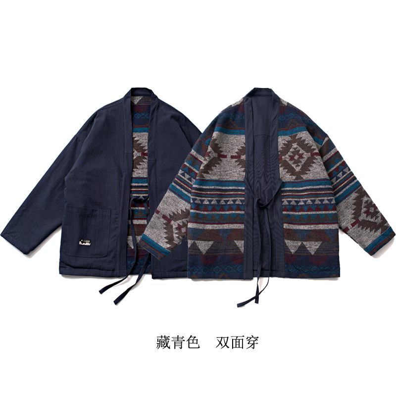 일본 복고풍 ameikaji 민족 스타일 파란색 염색 된 가운 코트 남성과 여성의 느슨한 검도 및 세트 카디건