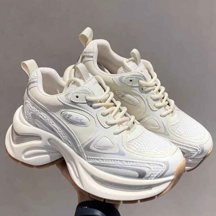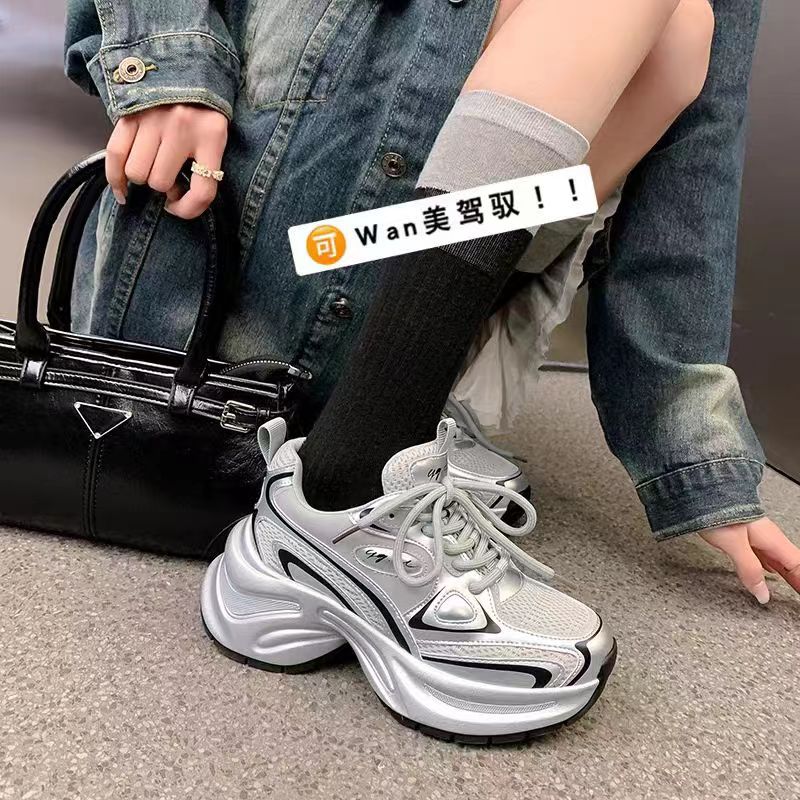 인터넷 유명 인사 아빠 신발 여성 슈퍼 핫 2024 봄 새로운 두꺼운 밑창 높이 증가 운동화 통기성 캐주얼 실버 운동화스토어 가기