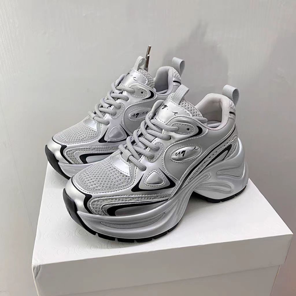 인터넷 유명 인사 아빠 신발 여성 슈퍼 핫 2024 봄 새로운 두꺼운 밑창 높이 증가 운동화 통기성 캐주얼 실버 운동화