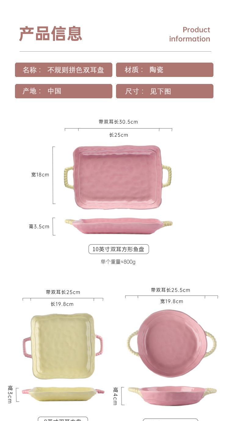 바이 노럴 플레이트 접시 가정용 세라믹 크리 에이 티브 접시 프랑스 고급 딥 디쉬 직사각형 생선 접시 잘 생긴 디너 플레이트