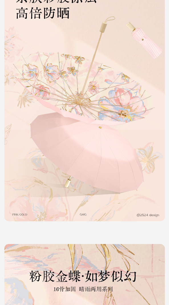 16 뼈 새로운 중국 스타일 국가 스타일 태양 우산 자외선 방지 태양 우산 접이식 태양 우산 이중 사용 높은 감각스토어 가기