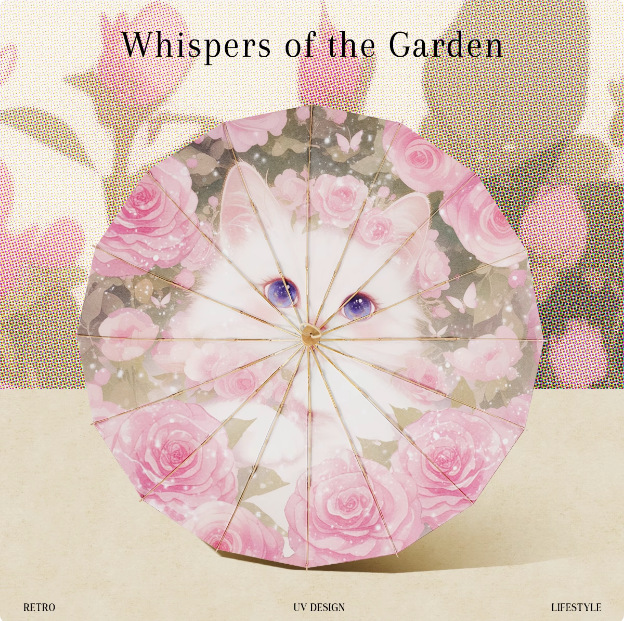 • 손으로 열 수 있는 16k 컬러 고무 흰색 고양이 정원 알루미늄 중봉 철 프레임 핸드백 우산 커버