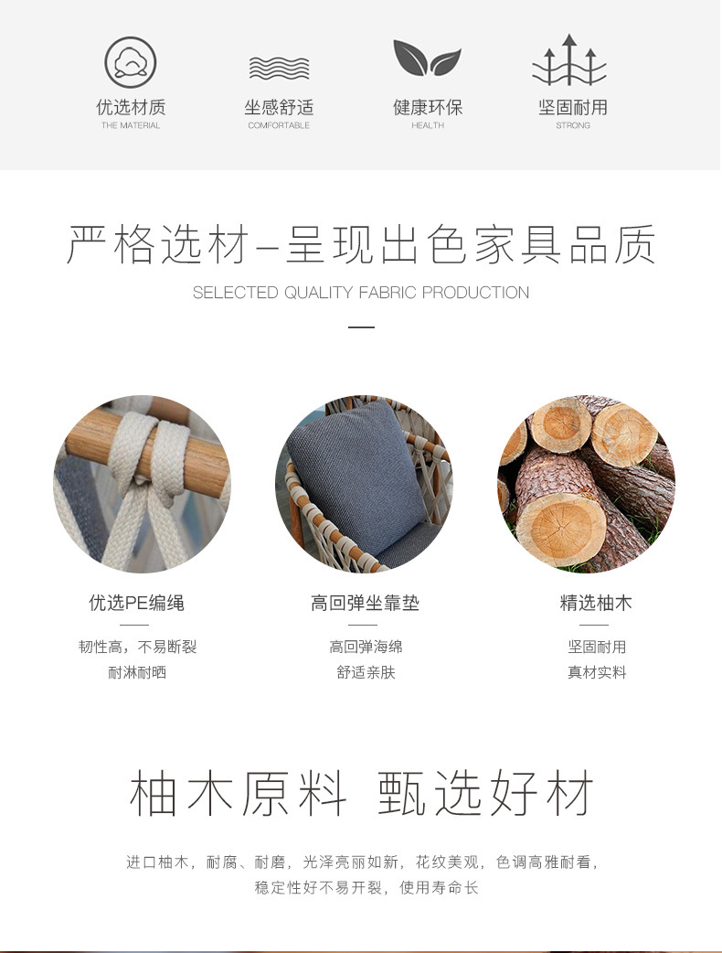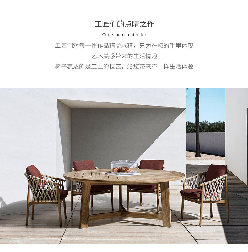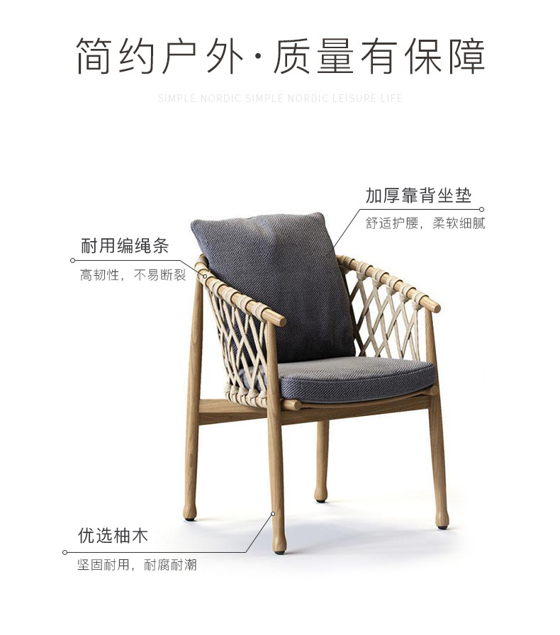 북유럽 야외 테이블과 의자 등나무 발코니 의자 빌라 코트야드 정원 야외 레저 테이블 티크 로프 등나무 의자