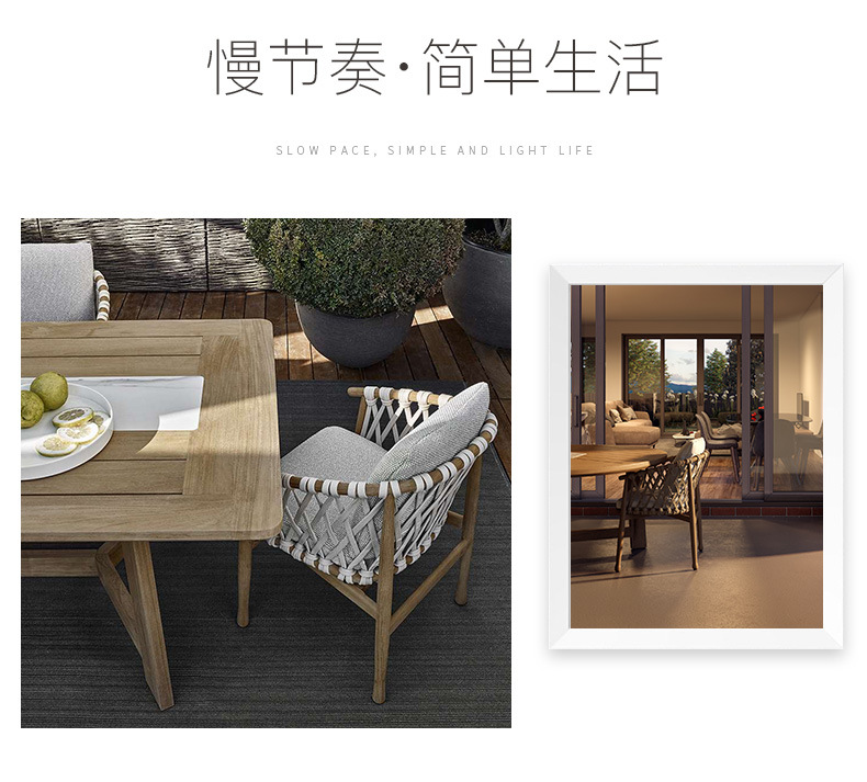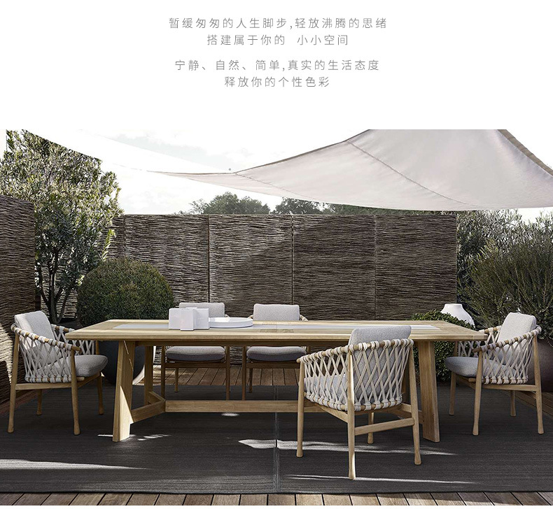 북유럽 야외 테이블과 의자 등나무 발코니 의자 빌라 코트야드 정원 야외 레저 테이블 티크 로프 등나무 의자스토어 가기