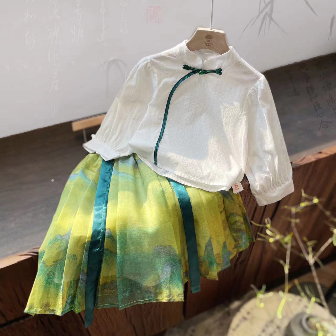 ZD24C028 봄 새로운 어린이 세트 소녀 국가 스타일 새로운 중국 복고풍 투피스 세트