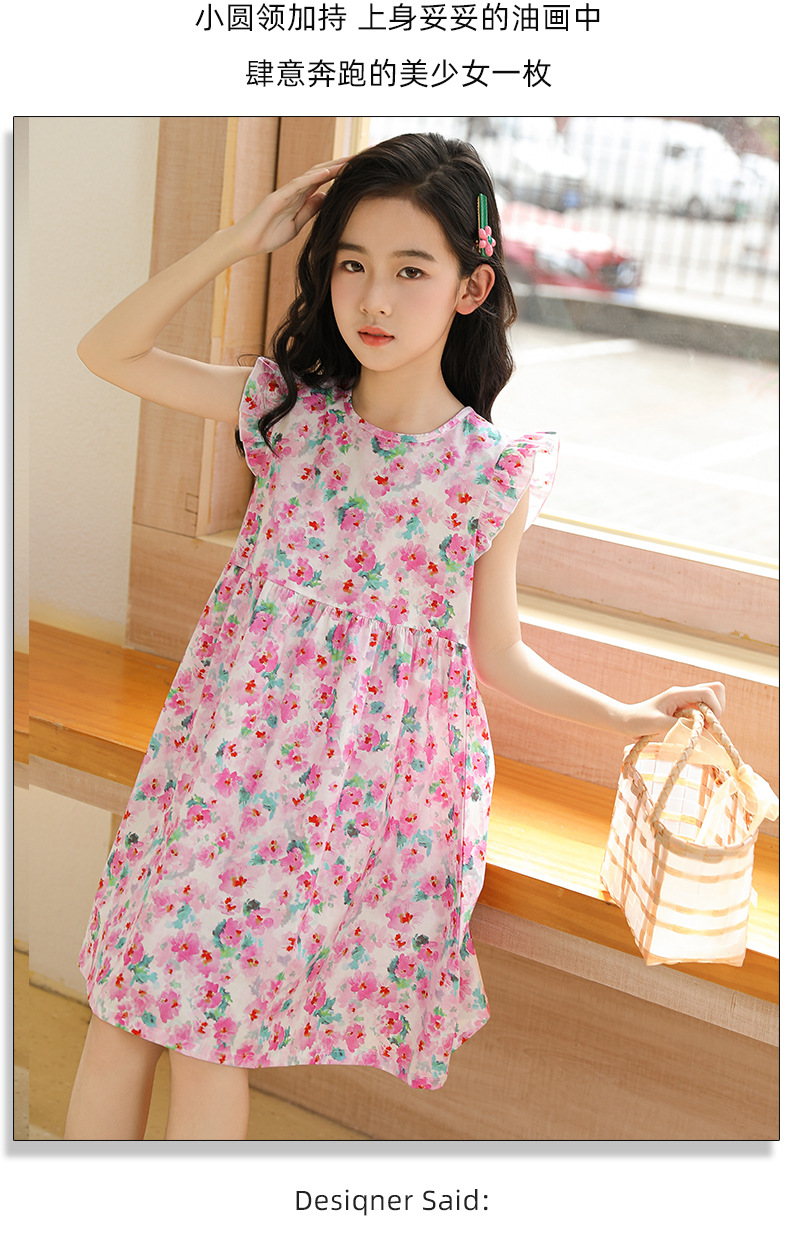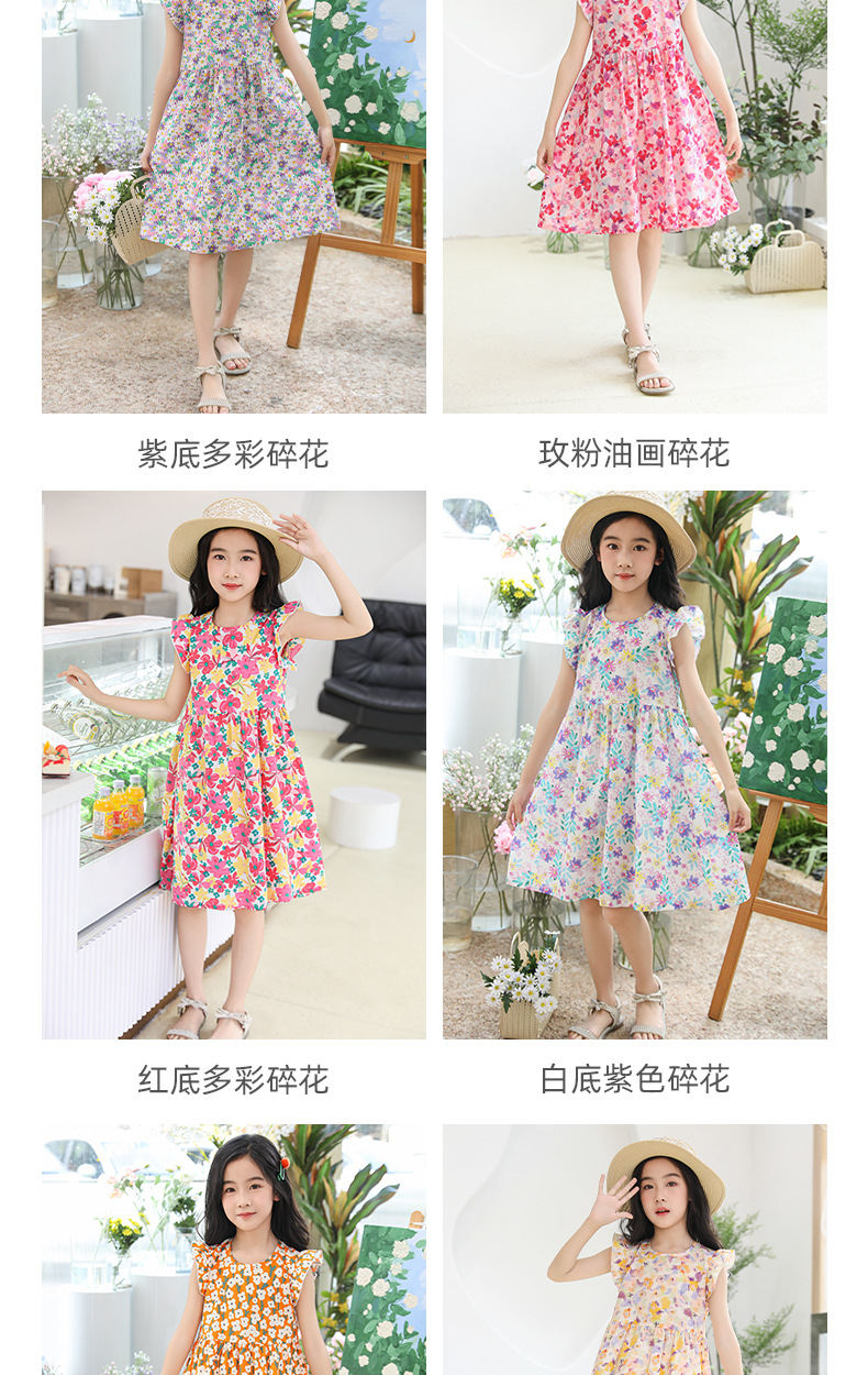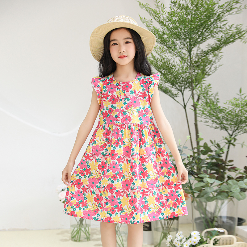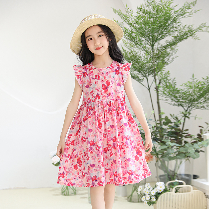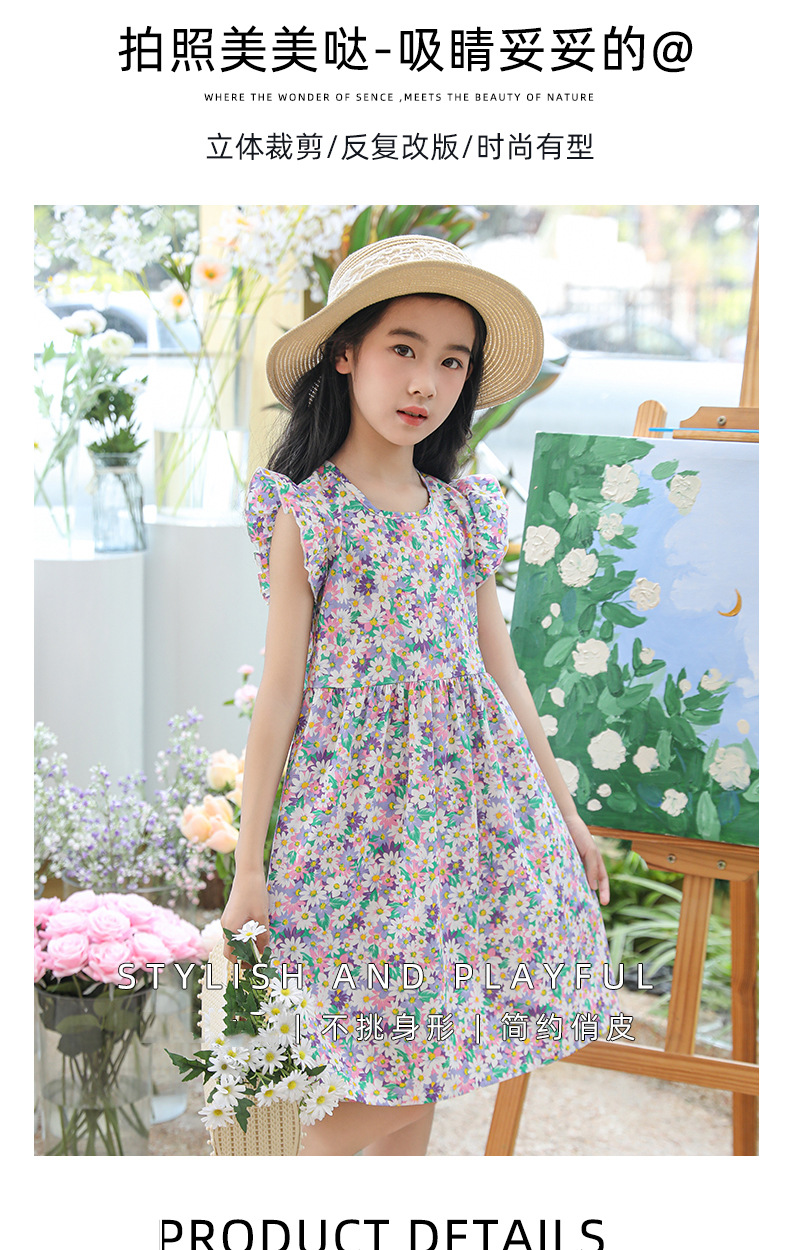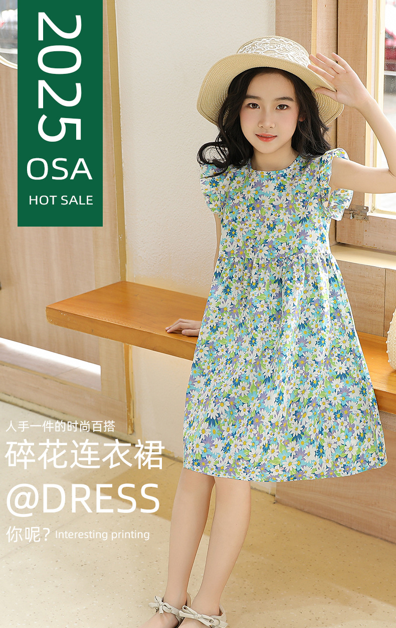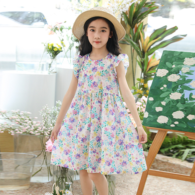 2025 여름 소녀 패션 달콤한 비행 소매 사이드 플로랄 원피스 소녀 멋진 통기성 레트로 스타일 공주 원피스스토어 가기