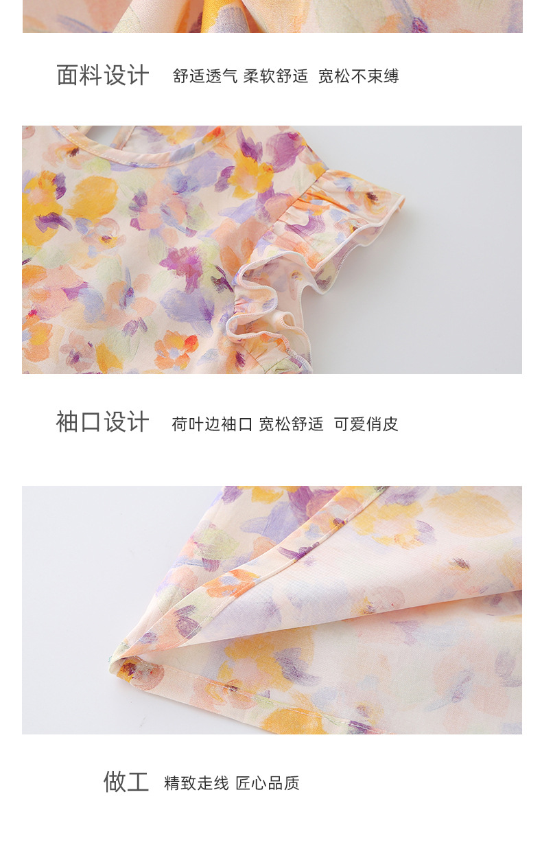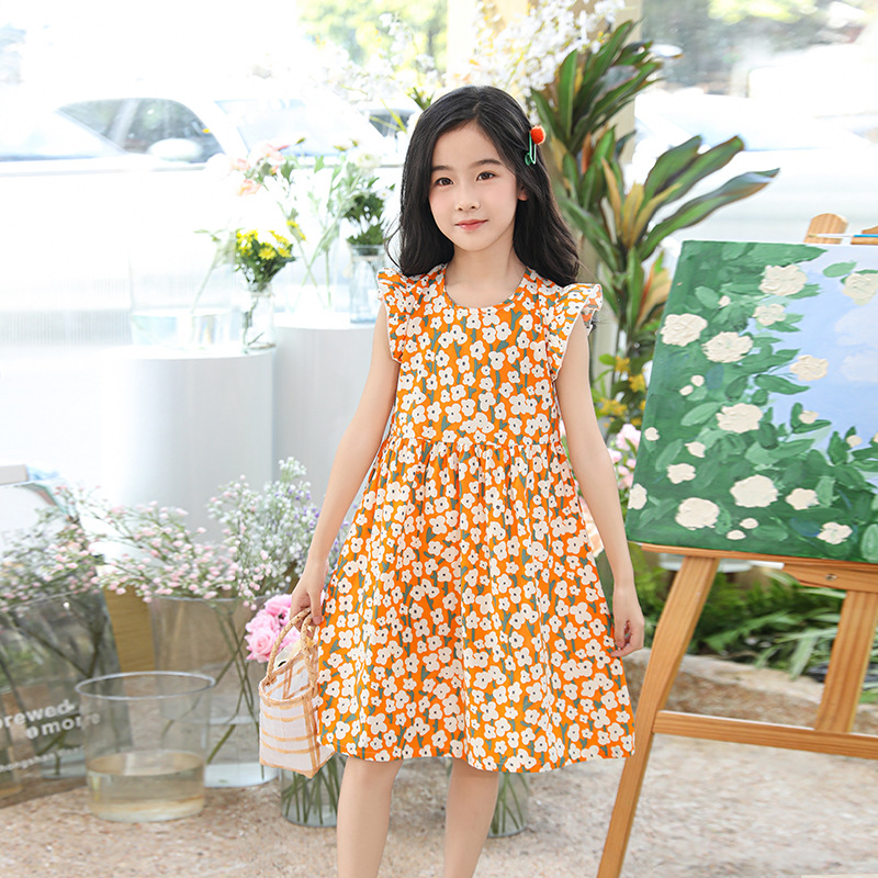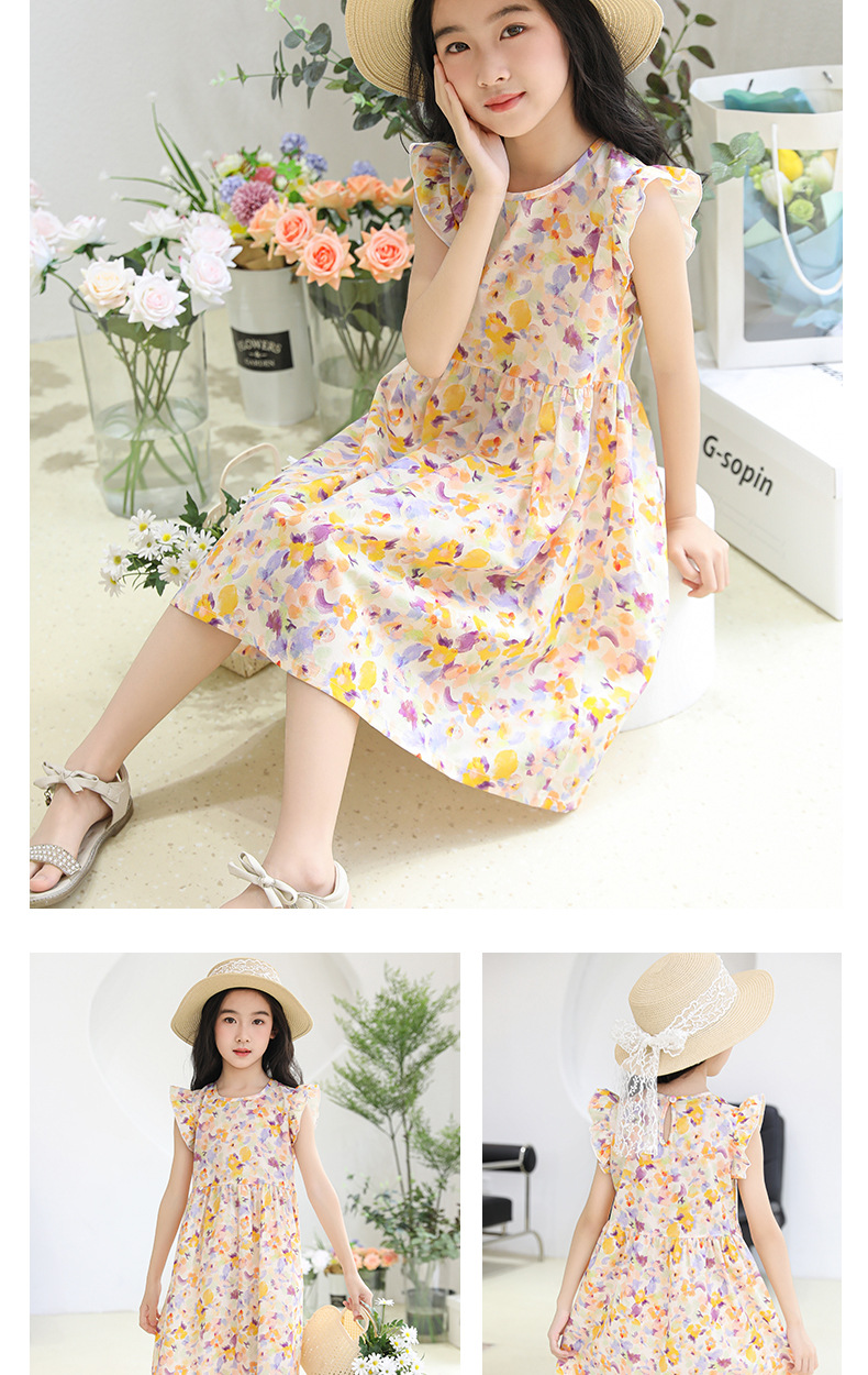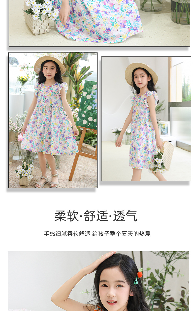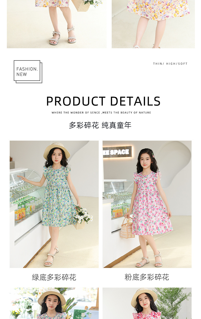 2025 여름 소녀 패션 달콤한 비행 소매 사이드 플로랄 원피스 소녀 멋진 통기성 레트로 스타일 공주 원피스스토어 가기