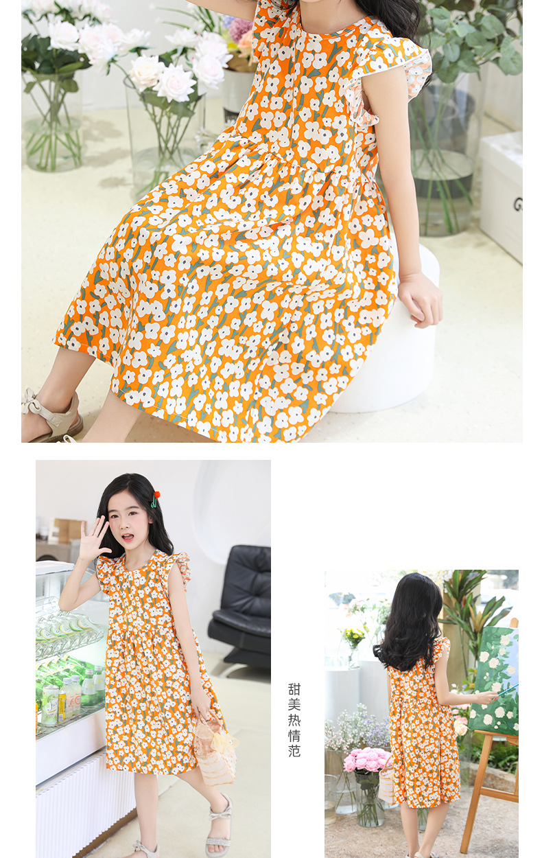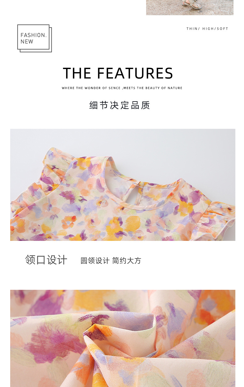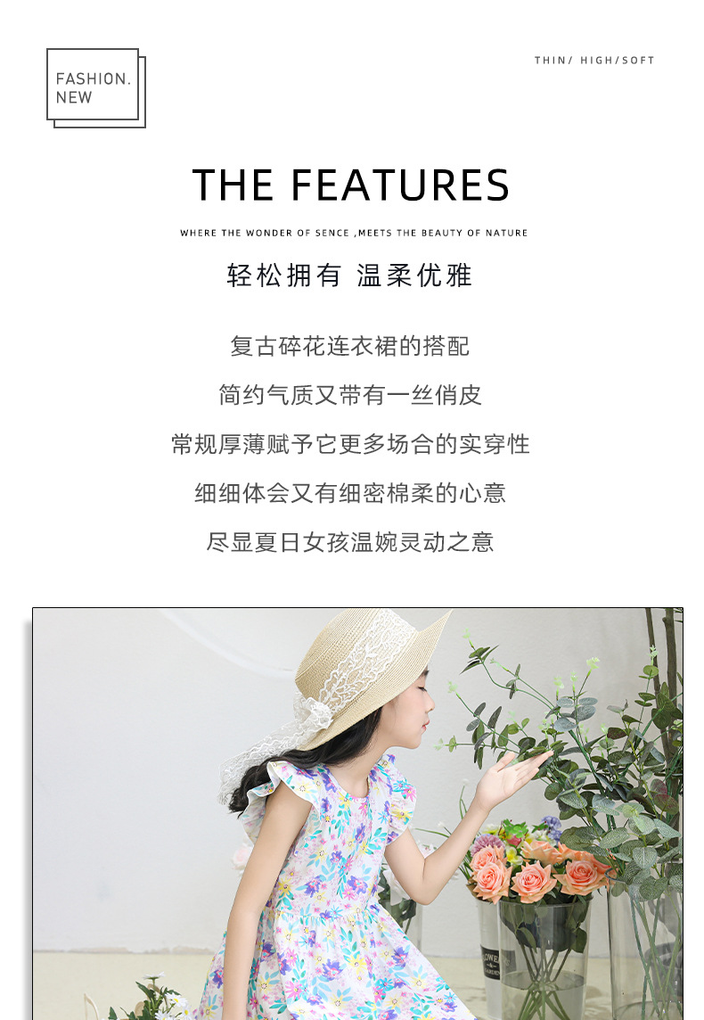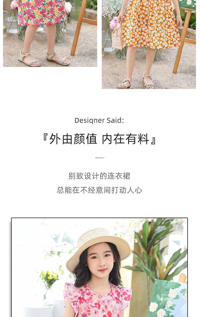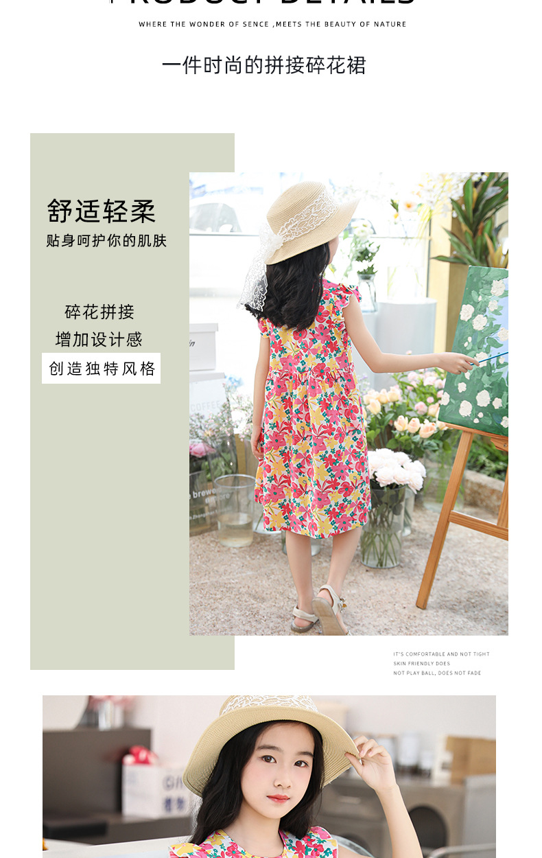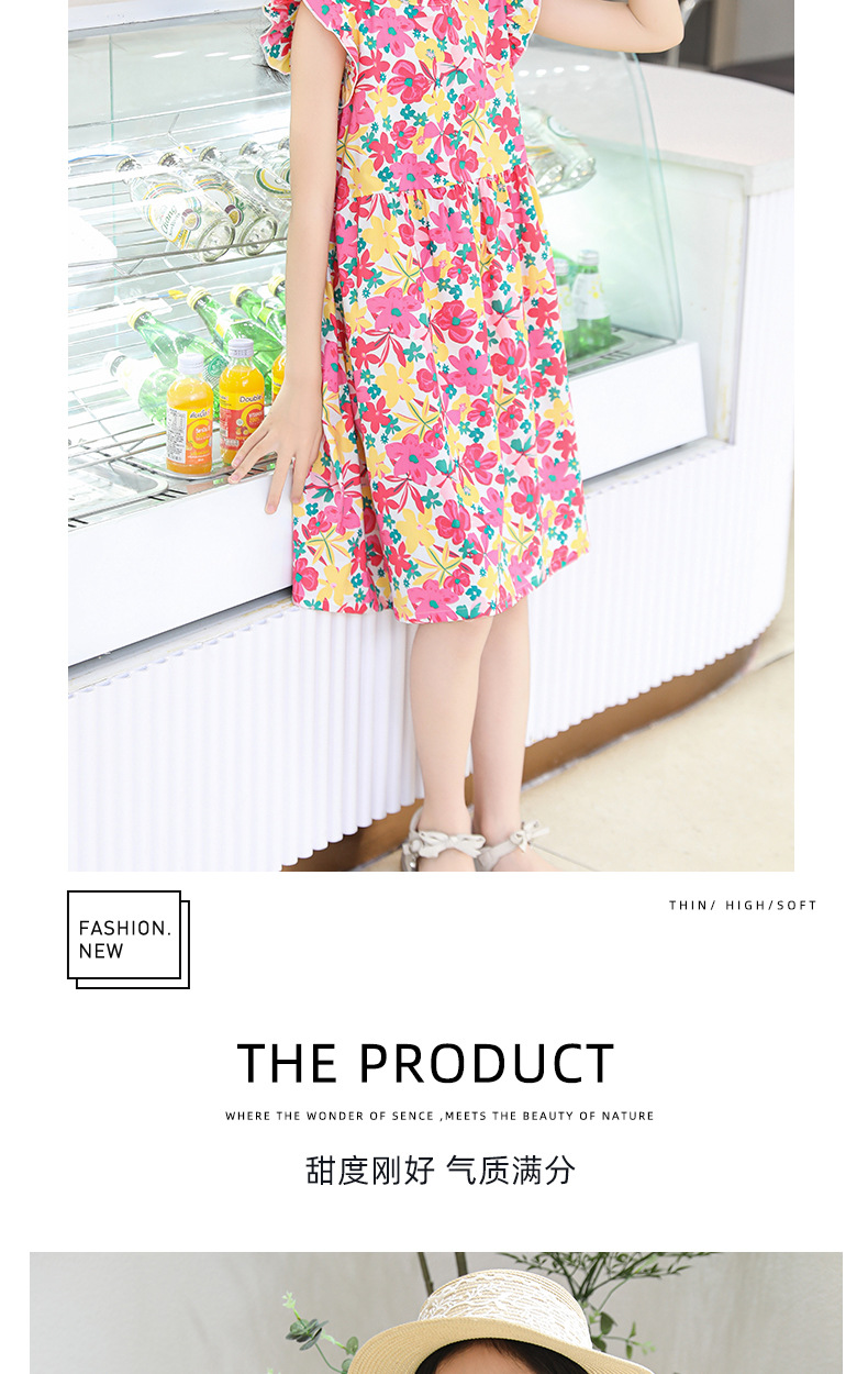 2025 여름 소녀 패션 달콤한 비행 소매 사이드 플로랄 원피스 소녀 멋진 통기성 레트로 스타일 공주 원피스스토어 가기