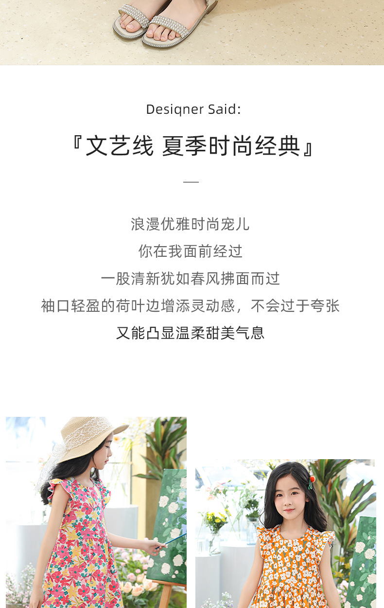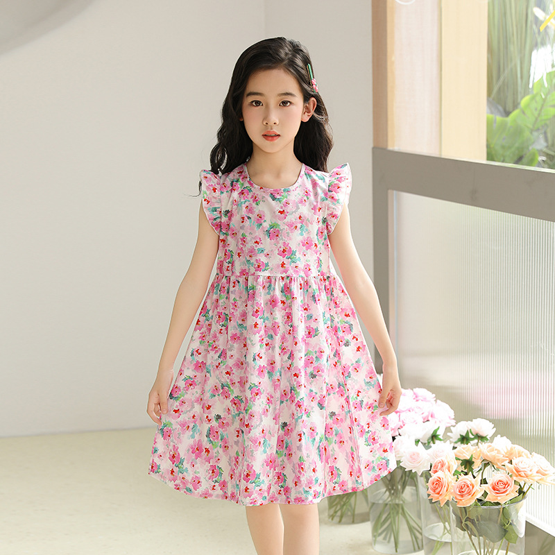 2025 여름 소녀 패션 달콤한 비행 소매 사이드 플로랄 원피스 소녀 멋진 통기성 레트로 스타일 공주 원피스