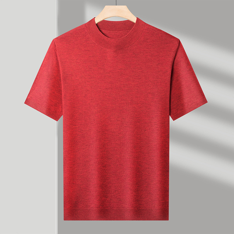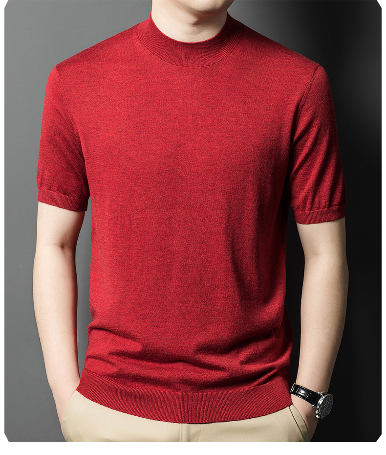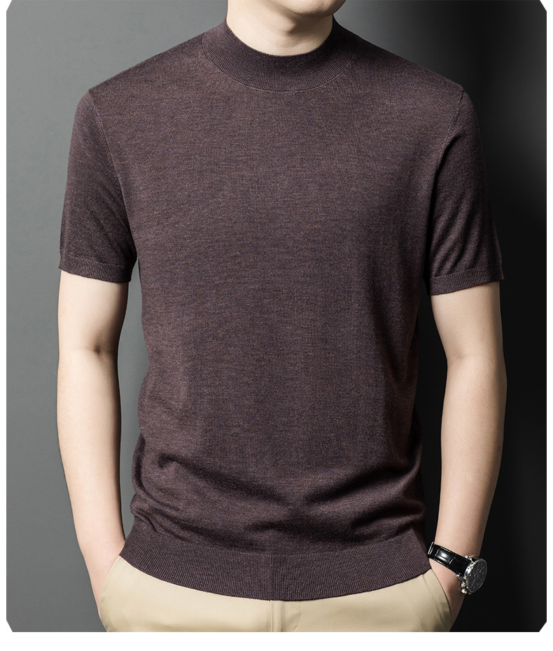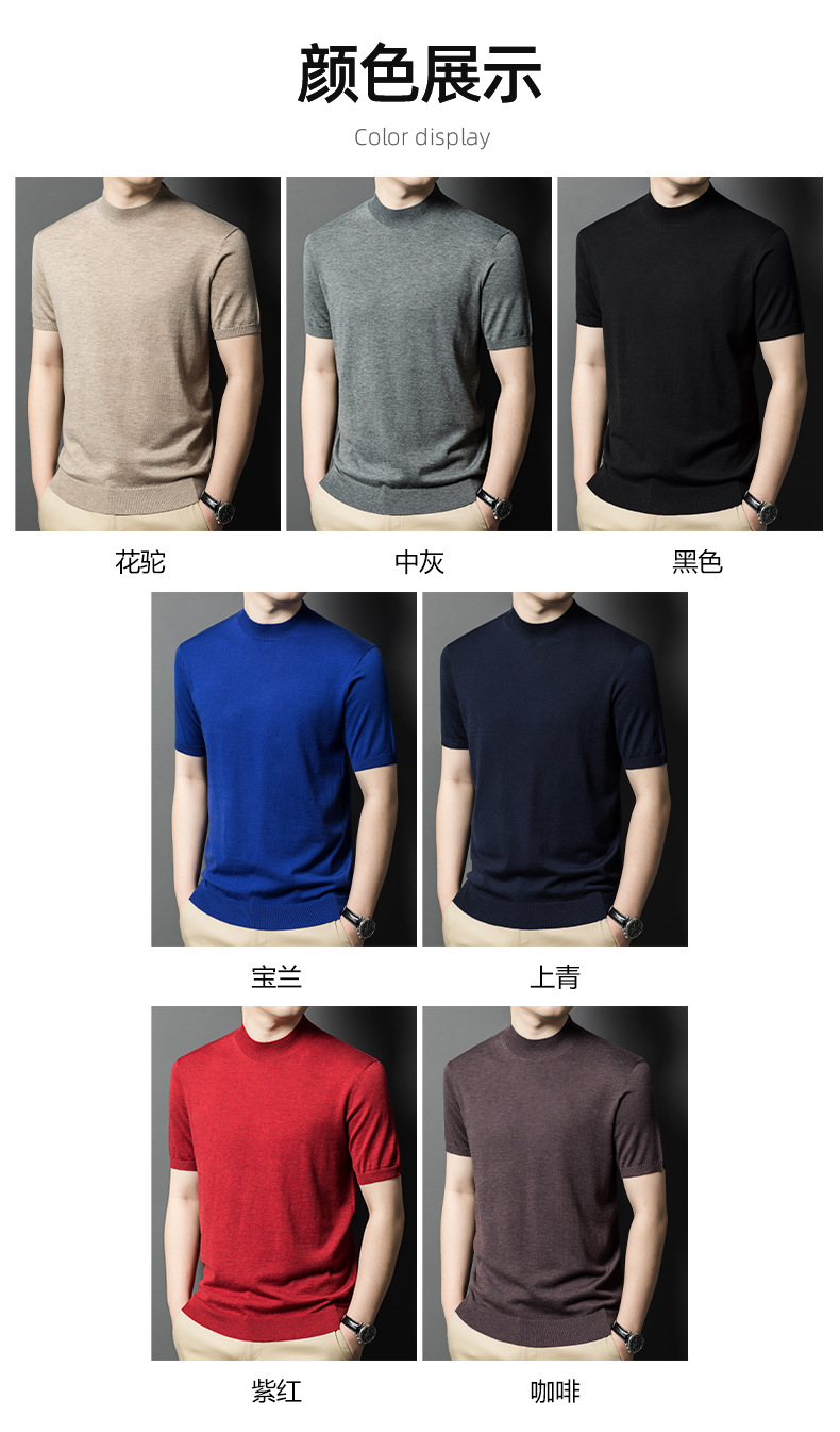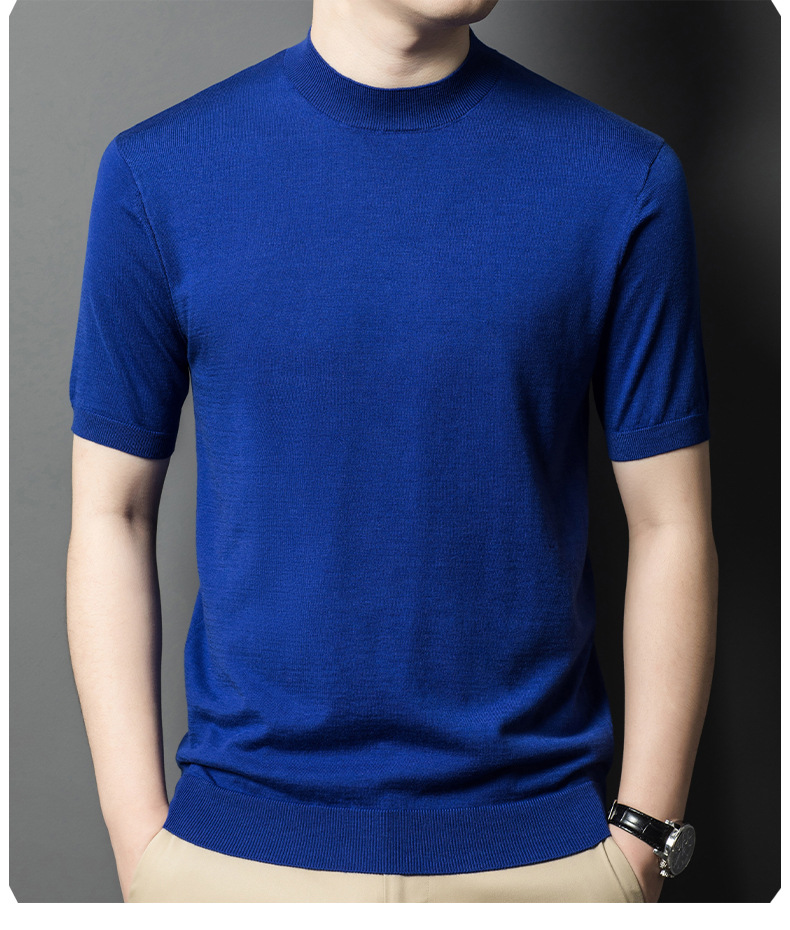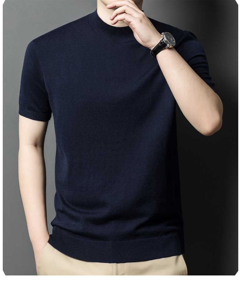 울 혼방 반하이넥 니트셔츠 남성용 반팔 슬림핏 베이스레이어 비즈니스 캐주얼 이너웨어 티셔츠 남성용 스웨터스토어 가기