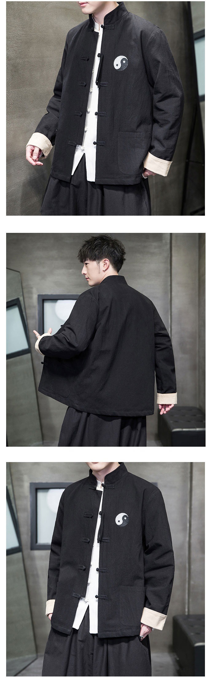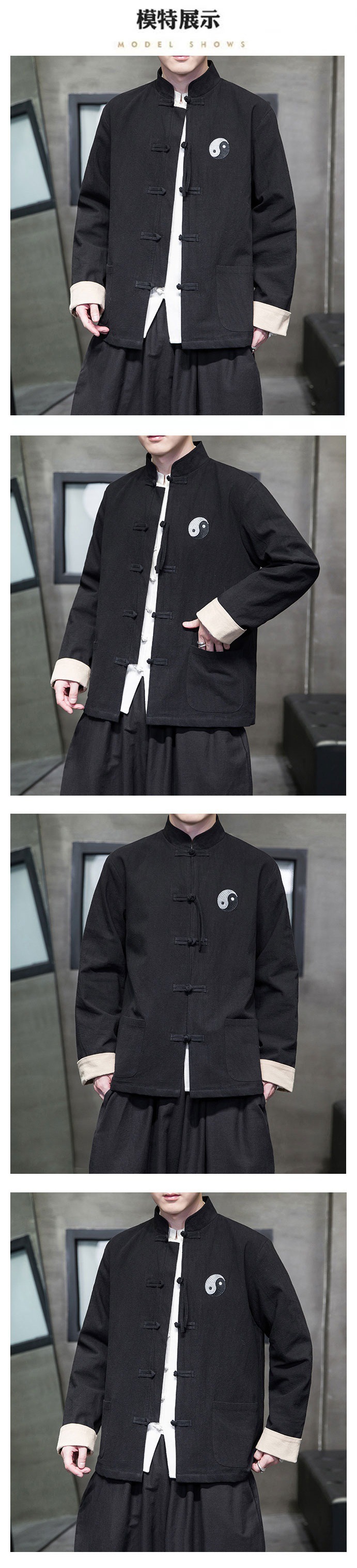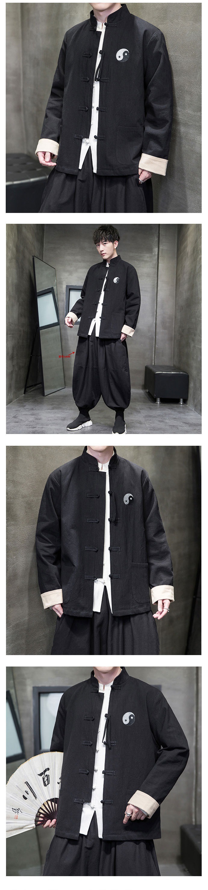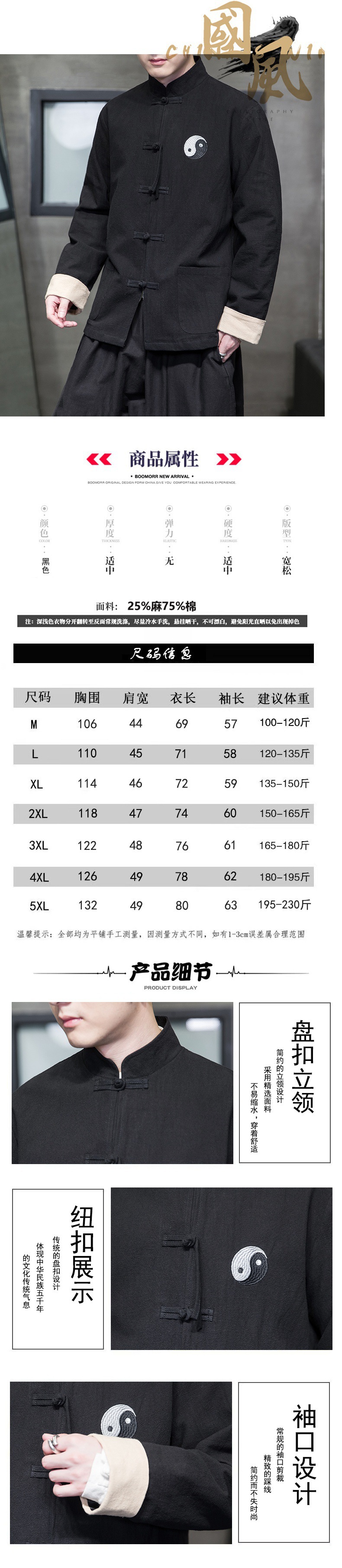 Linen TikTok 수정 2024 봄 Tang 세트 Taiji 자수 면화 및 린넨 복고풍 느슨한 플러스 사이즈 코트 탑