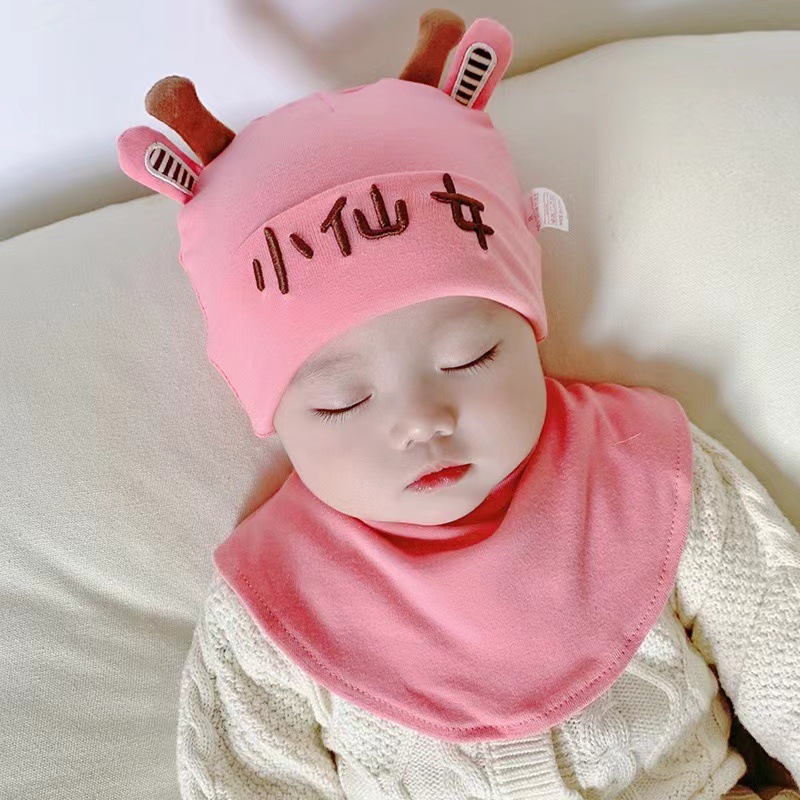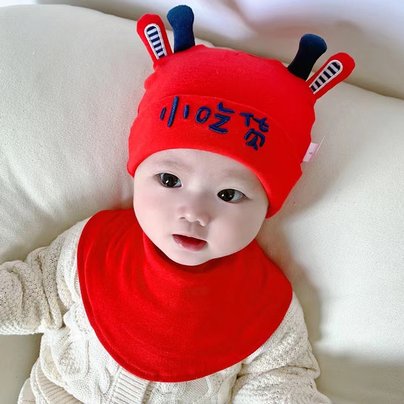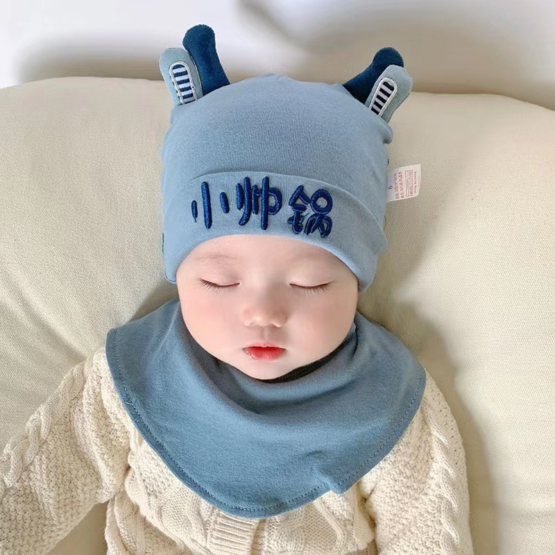 아기 모자, 아기 가을 겨울 스카프 일체형 모자, 남아용 한국식 자수 귀여운 유아용 따뜻한 후드 모자, 귀 보호
