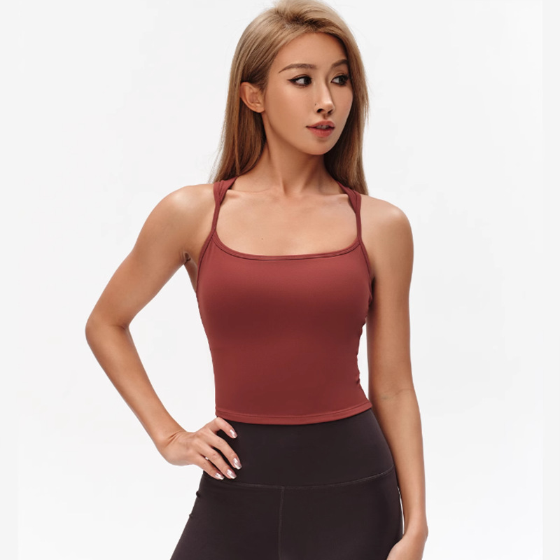 여성용 봄 여름 크로스보더 누드 스포츠 조끼, 통기성, 가슴 패드, 아우터, 요가 I자형, 아름다운 등, 피트니스, 속건성스토어 가기