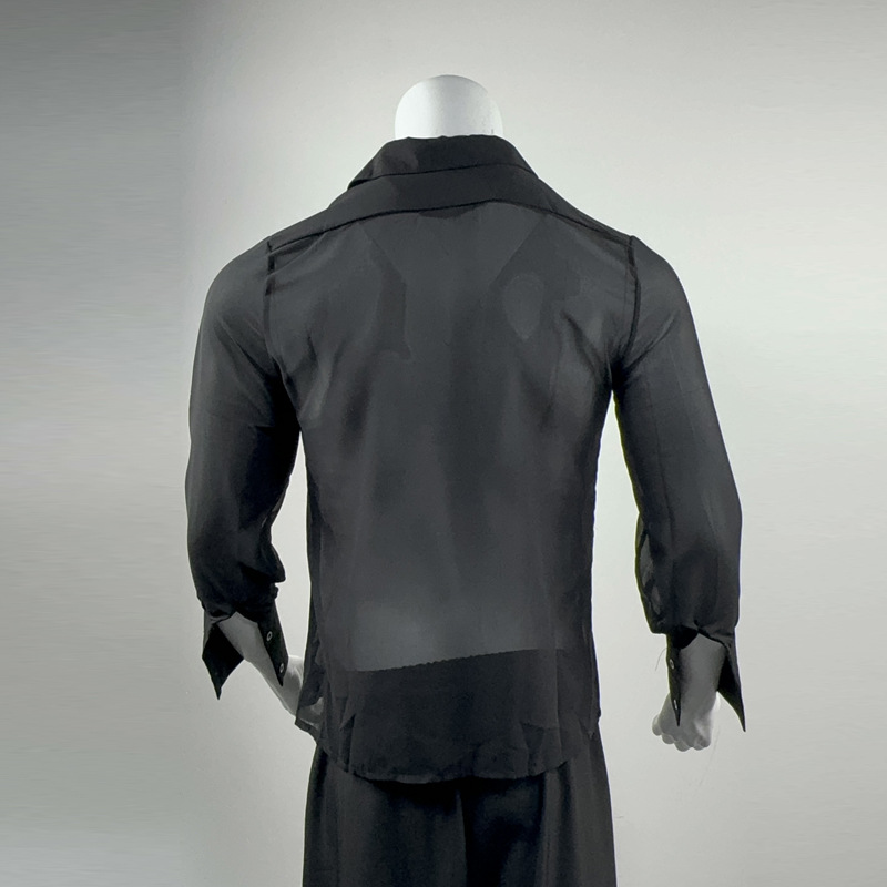 2026년 여름 남성용 블랙 얇은 통기성 라펠 탑 유럽 및 미국 패션 긴팔 섹시 시스루 셔츠스토어 가기