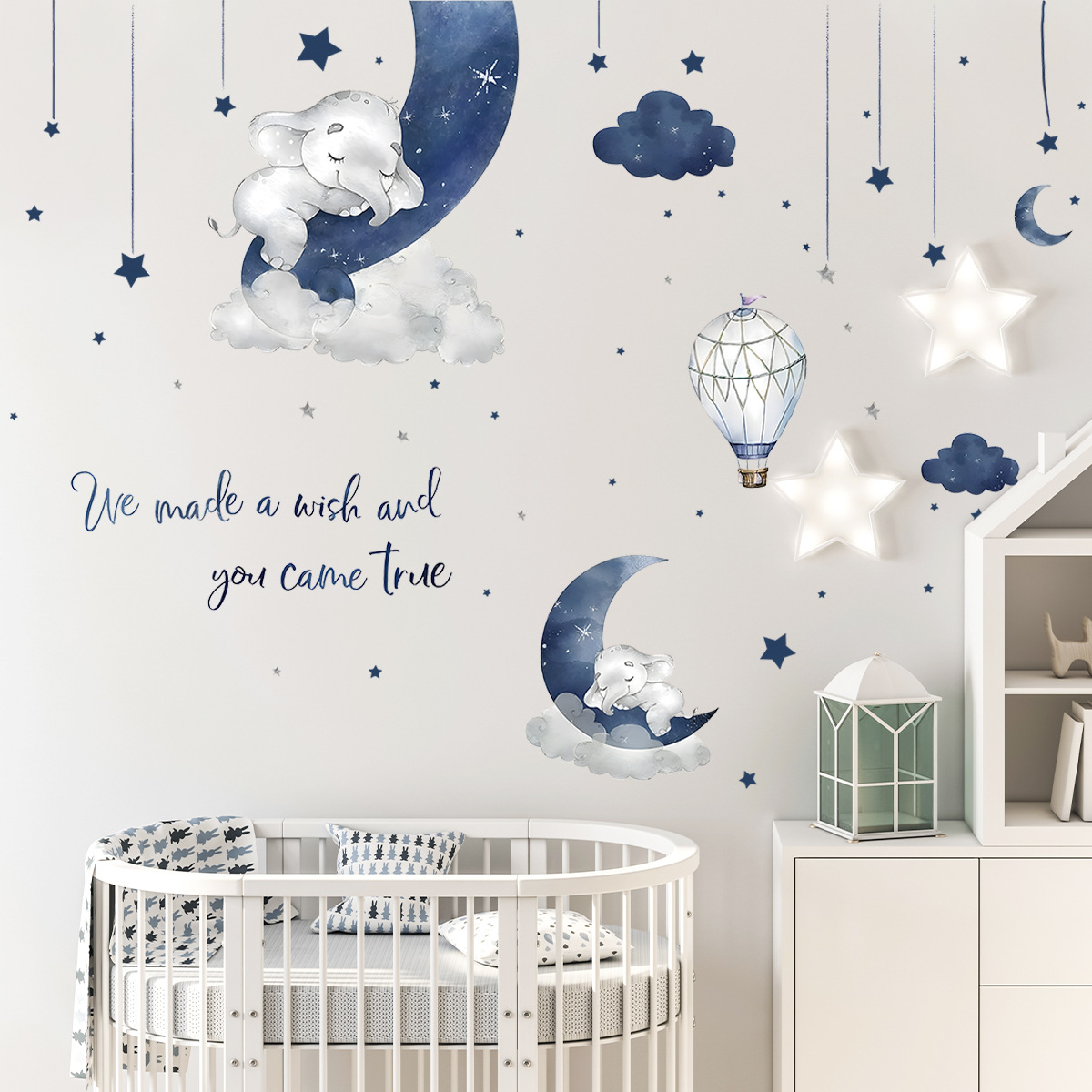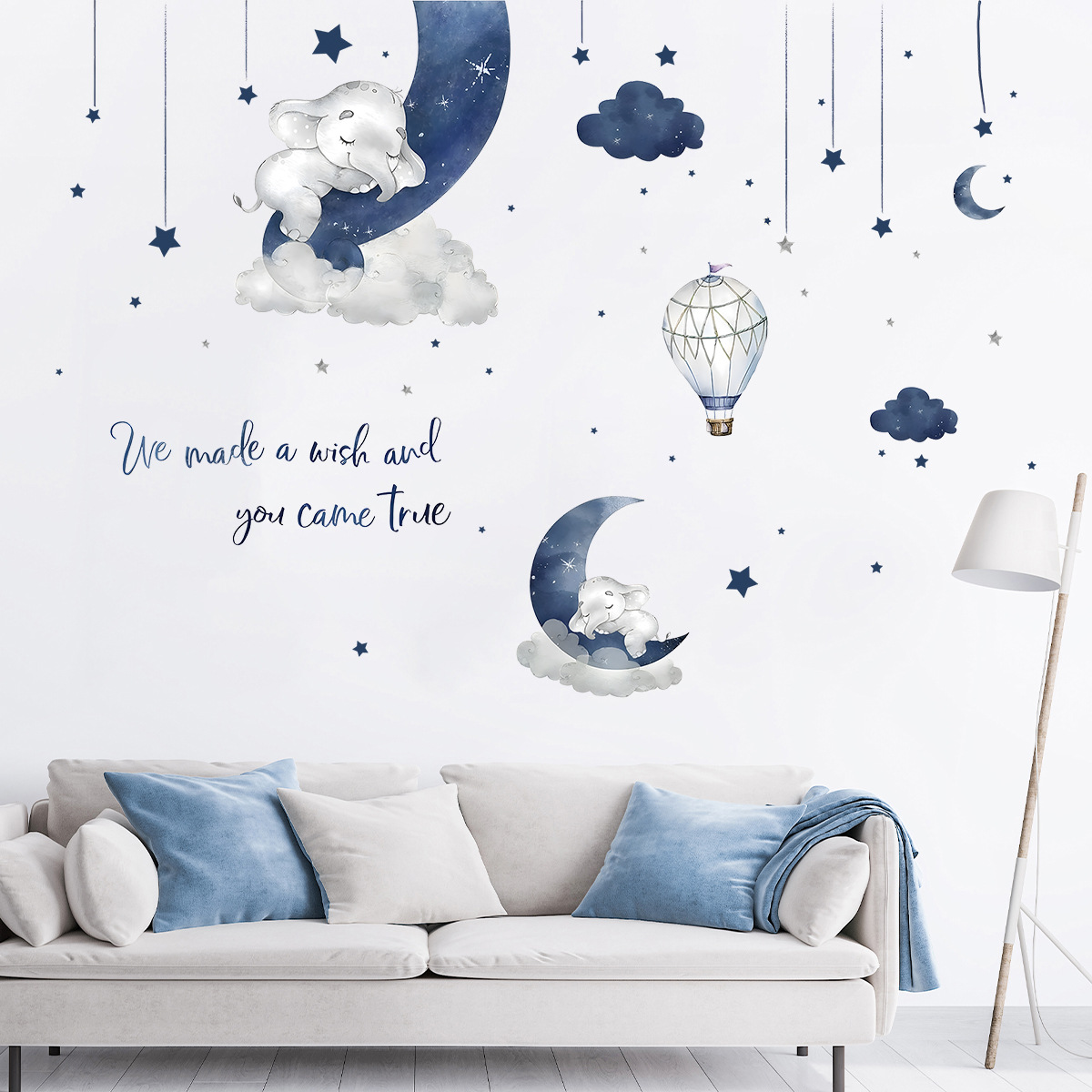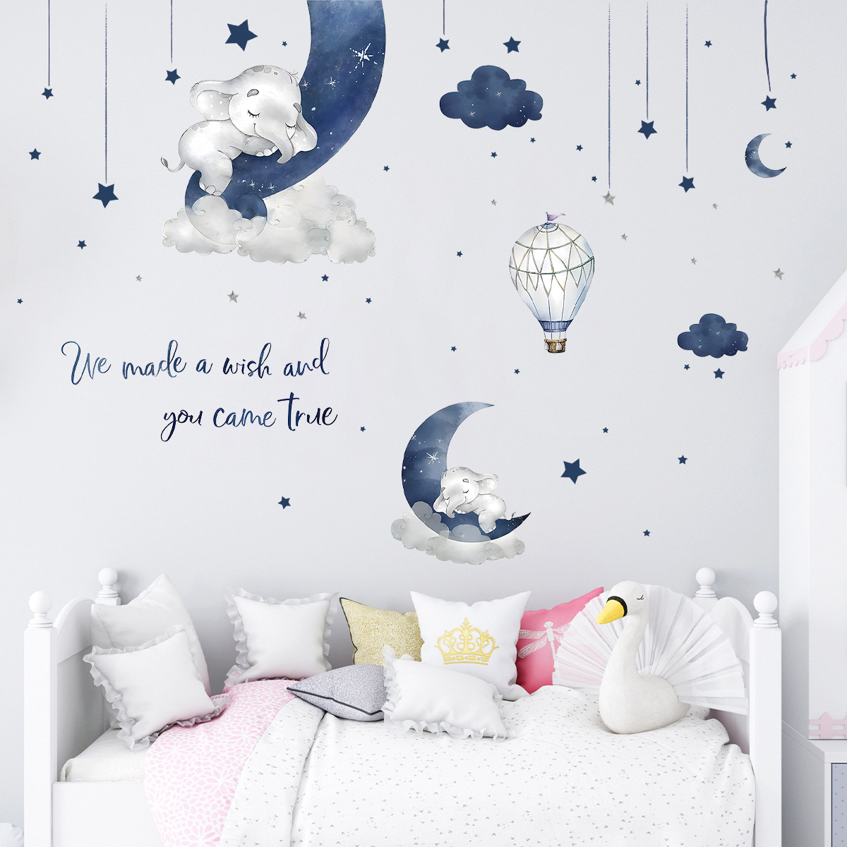 티파니 블루 인 바람 곡선 문 스타 리버 잠자는 코끼리 자기 접착 벽 스티커 어린이 방 장식 스티커 BR94892