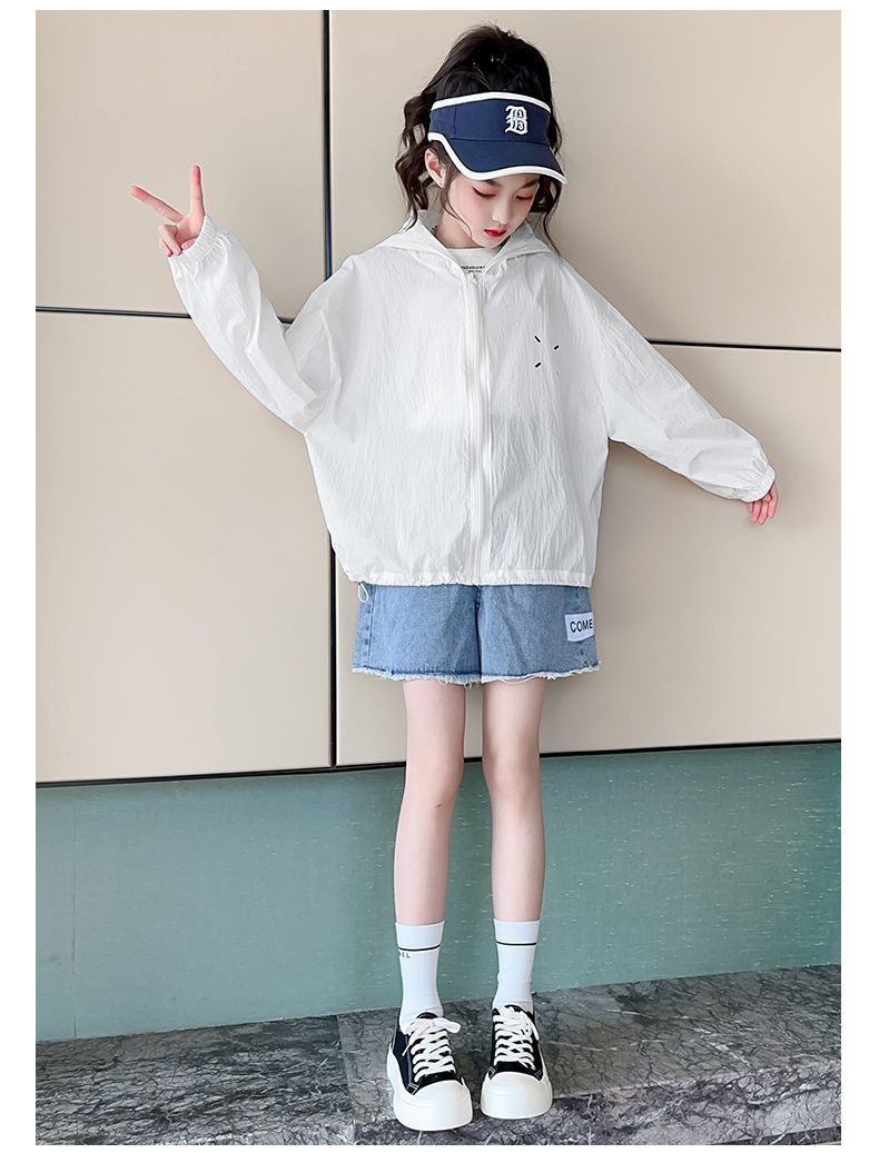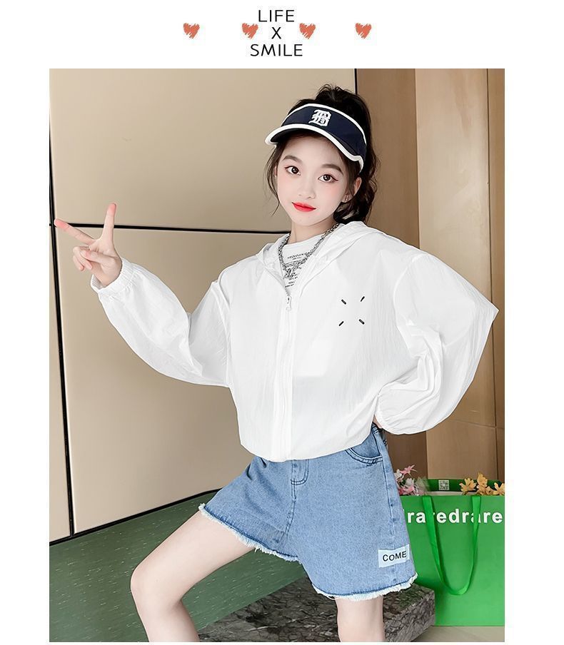 어린이 코트 2024 여름 새 소녀 야외 태양 보호 의류 캐주얼 통기성 태양 보호 경량 스포츠 카디건 패션스토어 가기