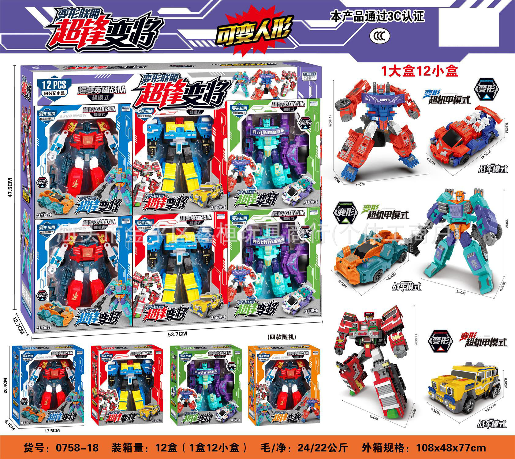 • 변형 로봇 (1 가격) [수량 샷 12 헤어 디스플레이 박스] 777-28