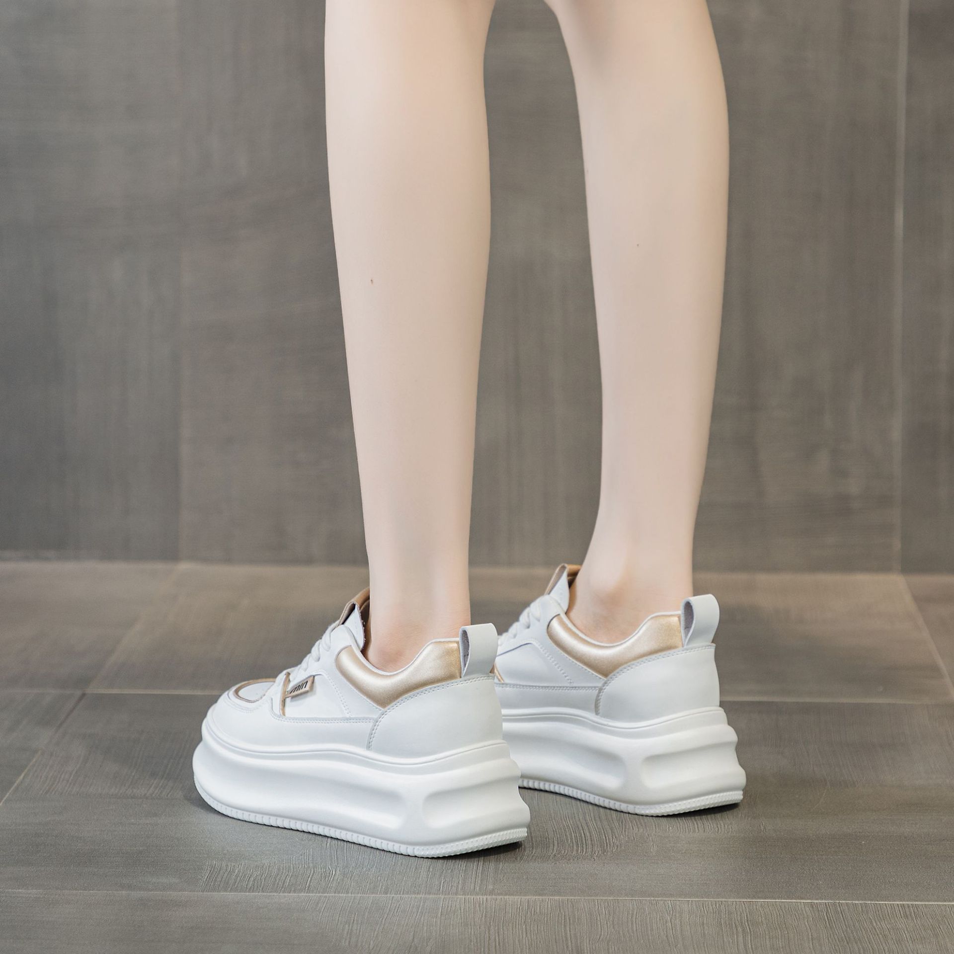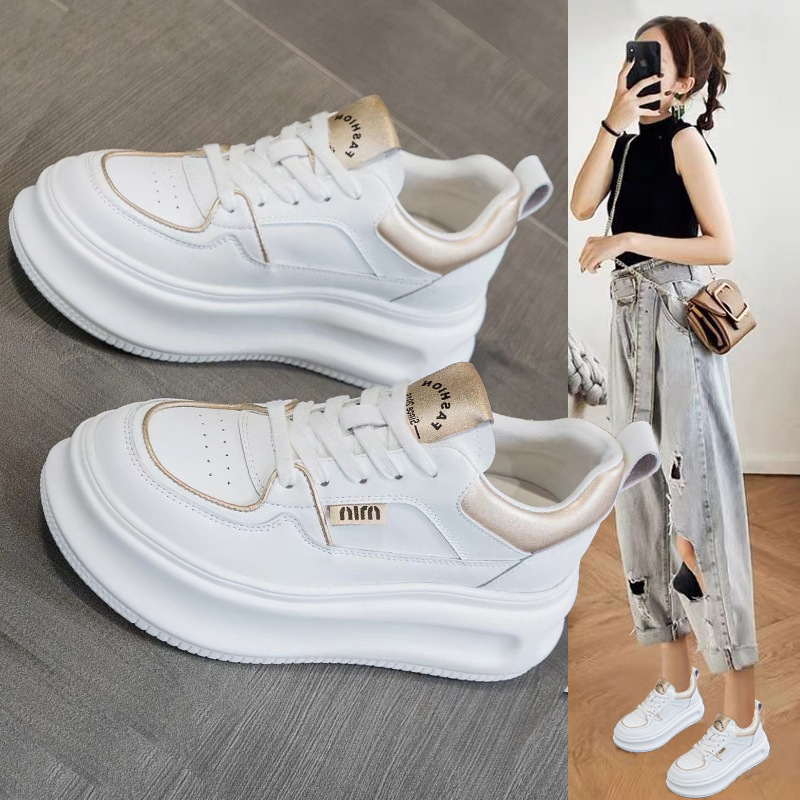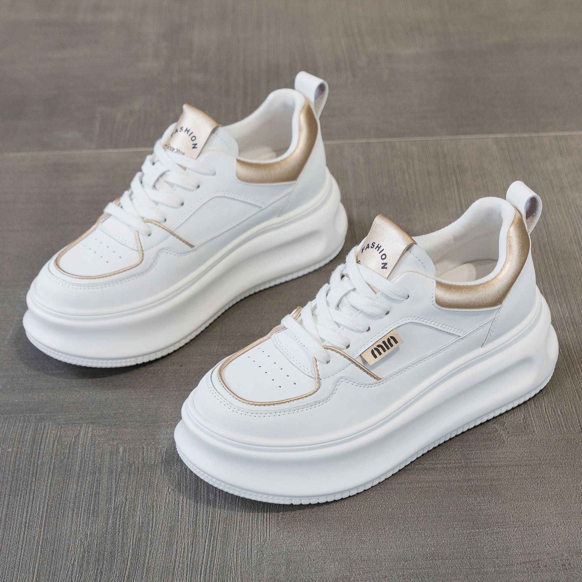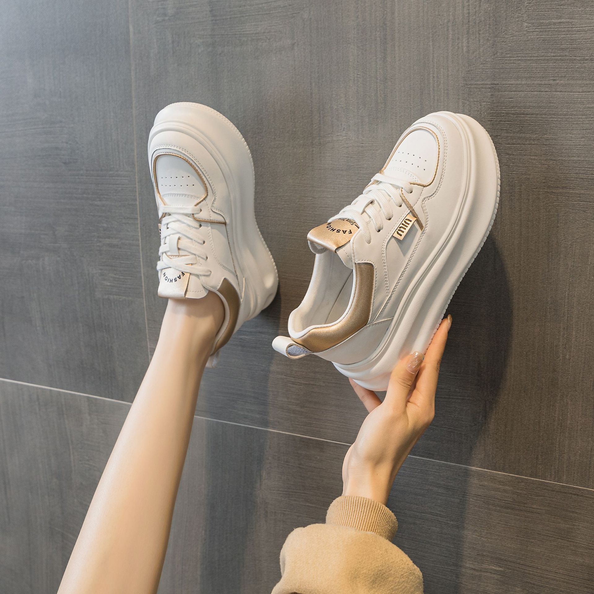 여성용 퍼핀 화이트 슈즈 2025 봄 새로운 낮은 최고 높이 작은 두꺼운 스키니 슈즈 캐주얼 여성용 신발스토어 가기