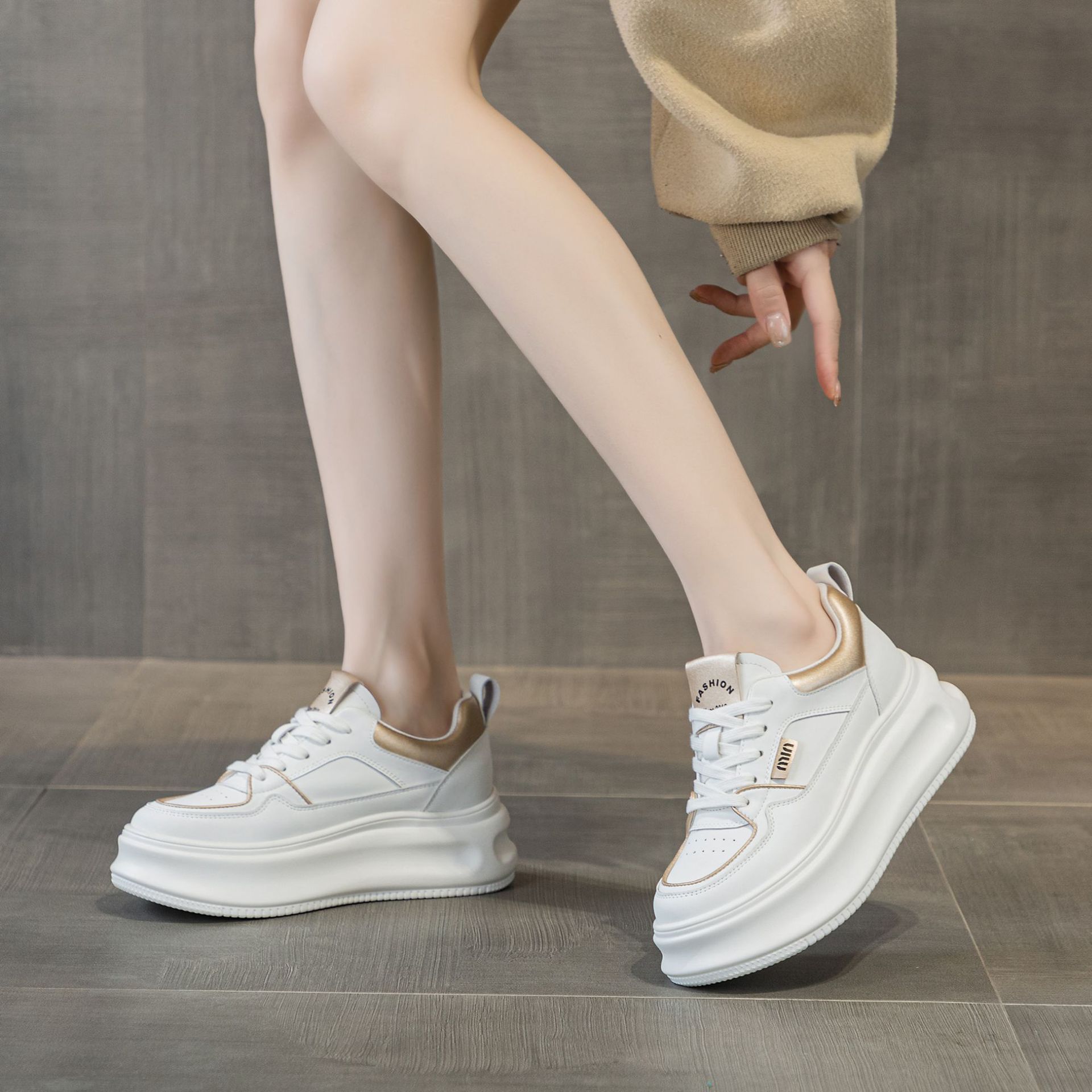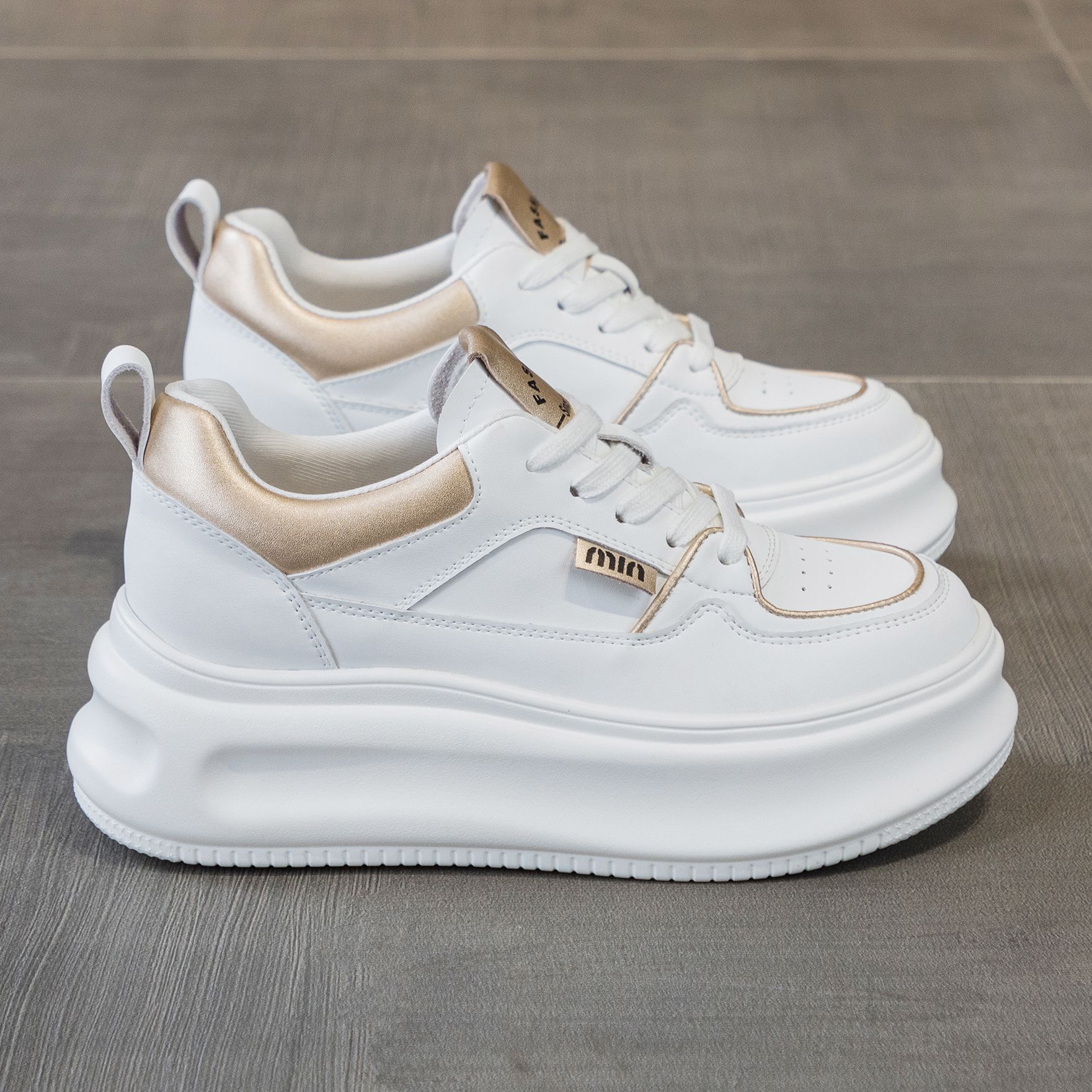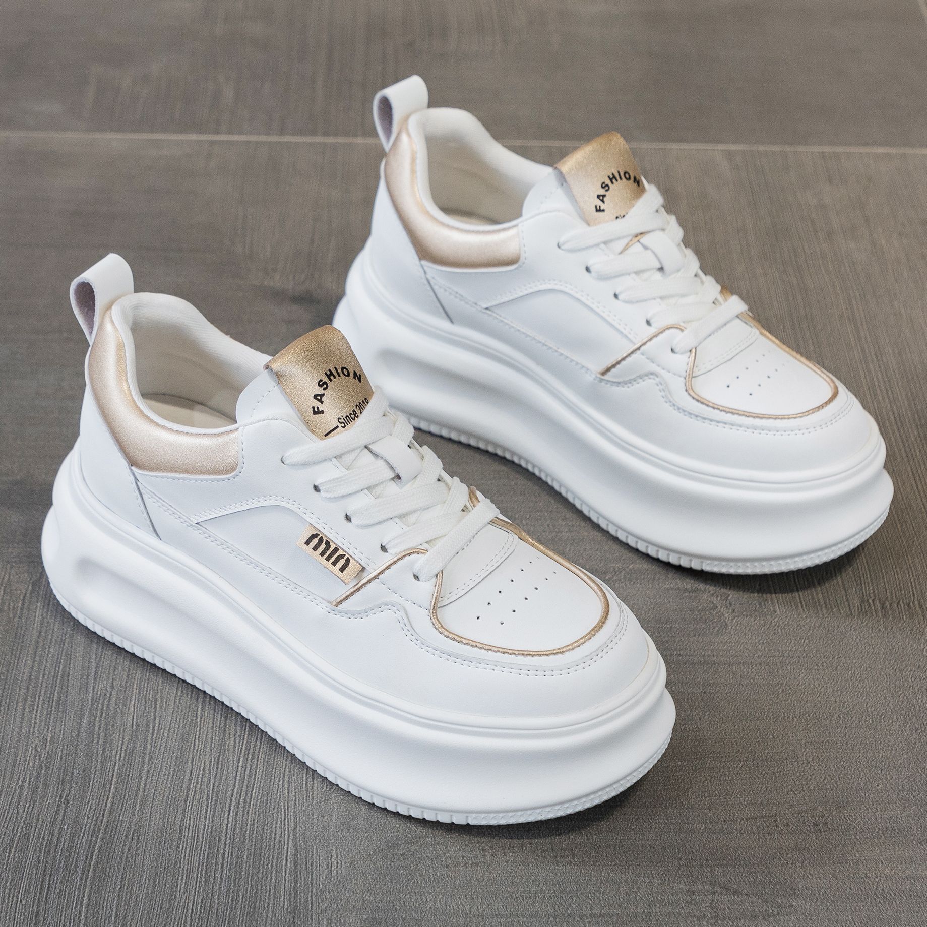 여성용 퍼핀 화이트 슈즈 2025 봄 새로운 낮은 최고 높이 작은 두꺼운 스키니 슈즈 캐주얼 여성용 신발스토어 가기