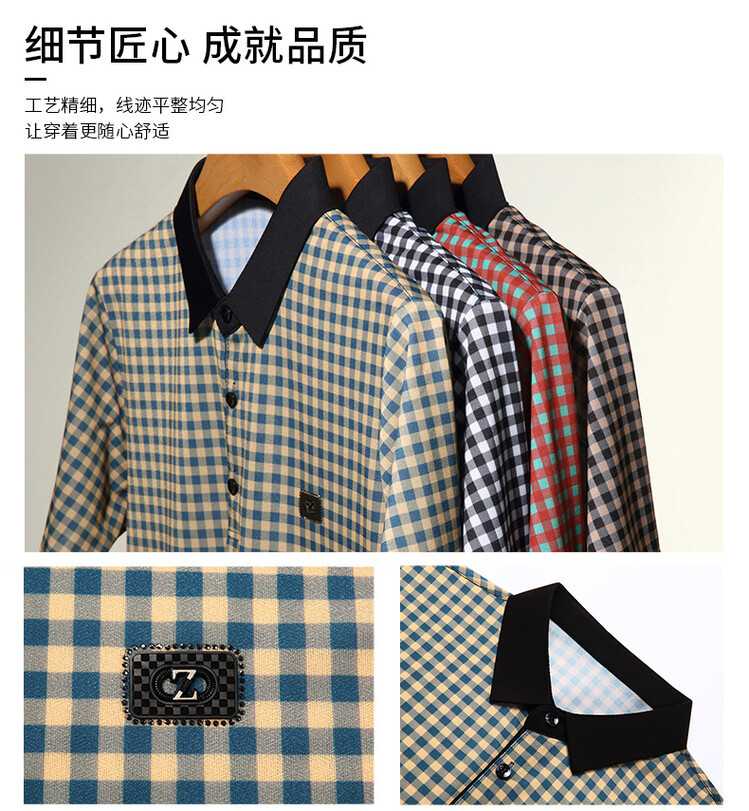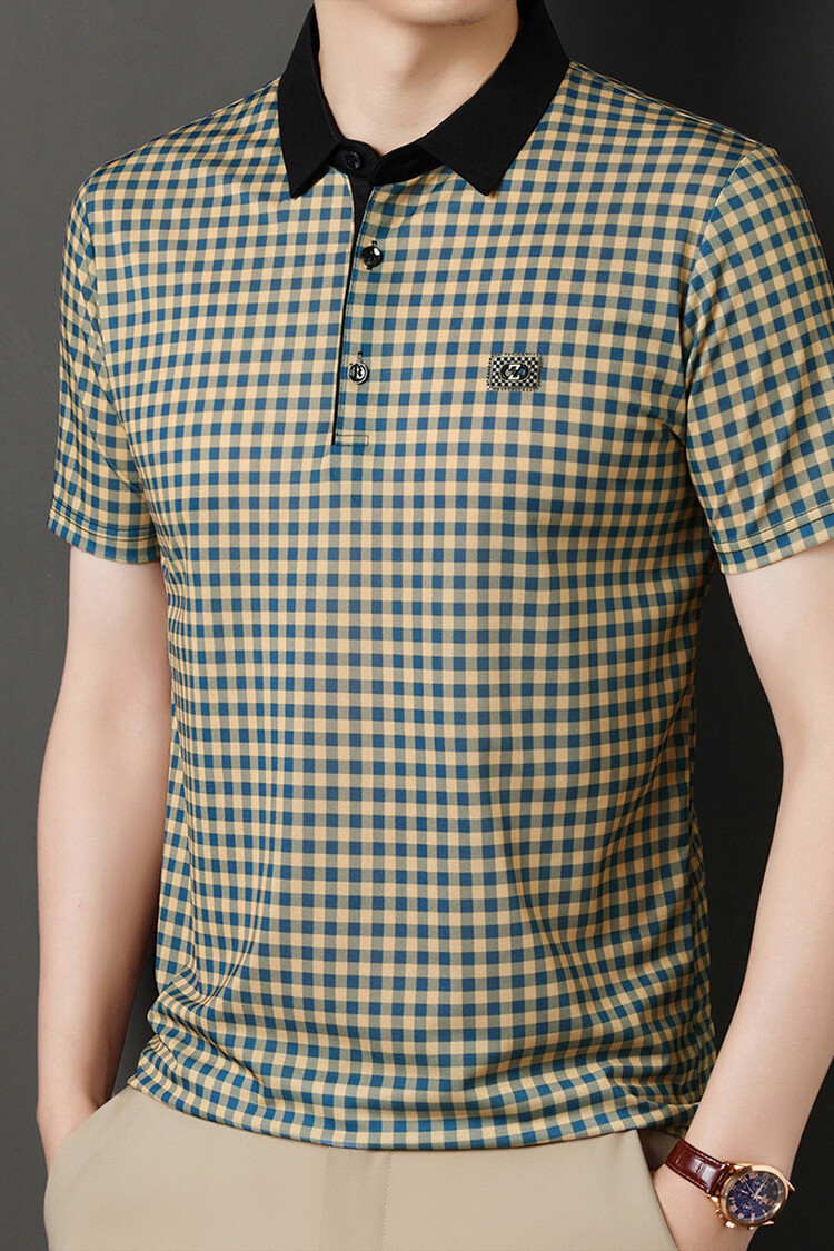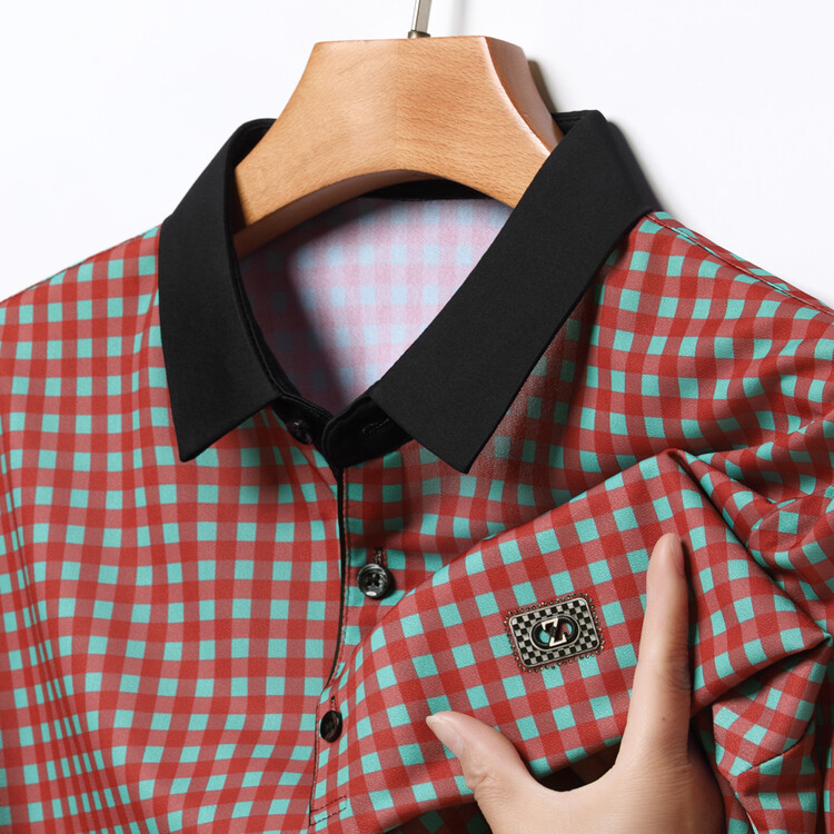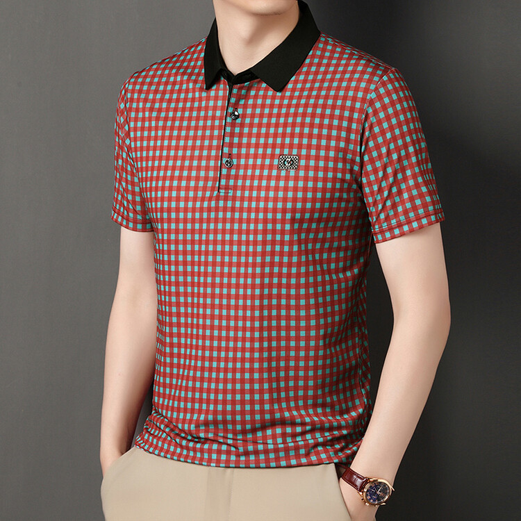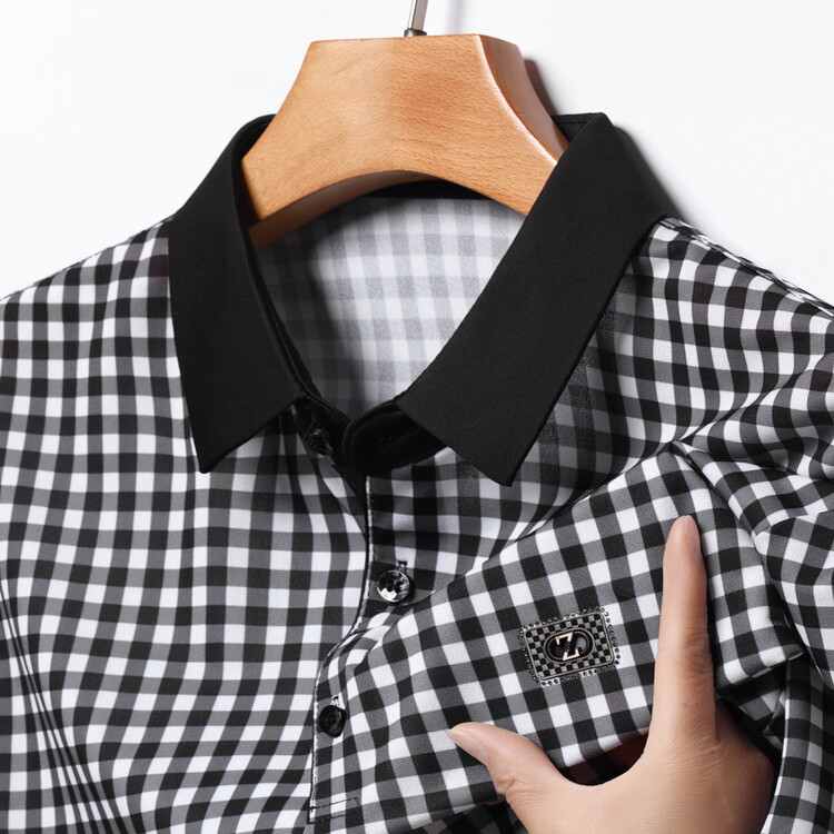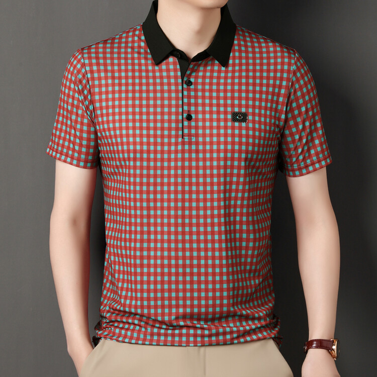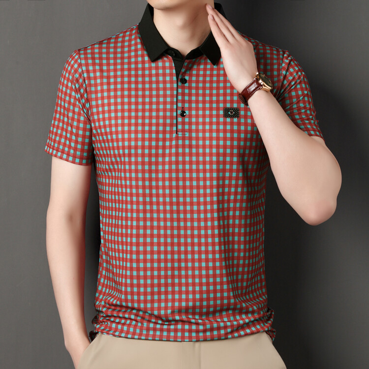 아이스 실크 반팔 티셔츠 남성용 여름 느슨한 반소매 언더 셔츠 티셔츠 중년 아빠용 격자 무늬 옷깃 남성용 탑 T