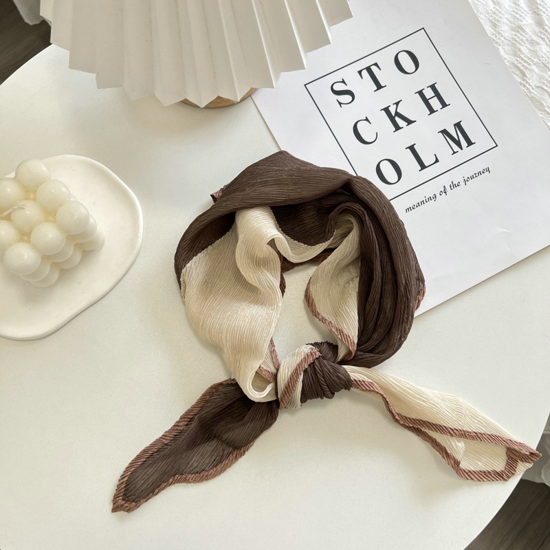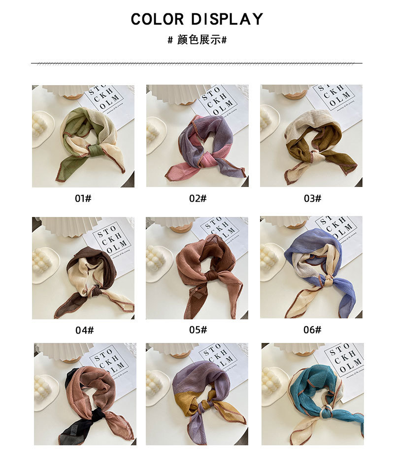 새로운 대비 색상 가방 가장자리 주름 작은 사각형 스카프 태양 보호 얇은 부드러운 올 매치 우아한 장식 초박형 스카프