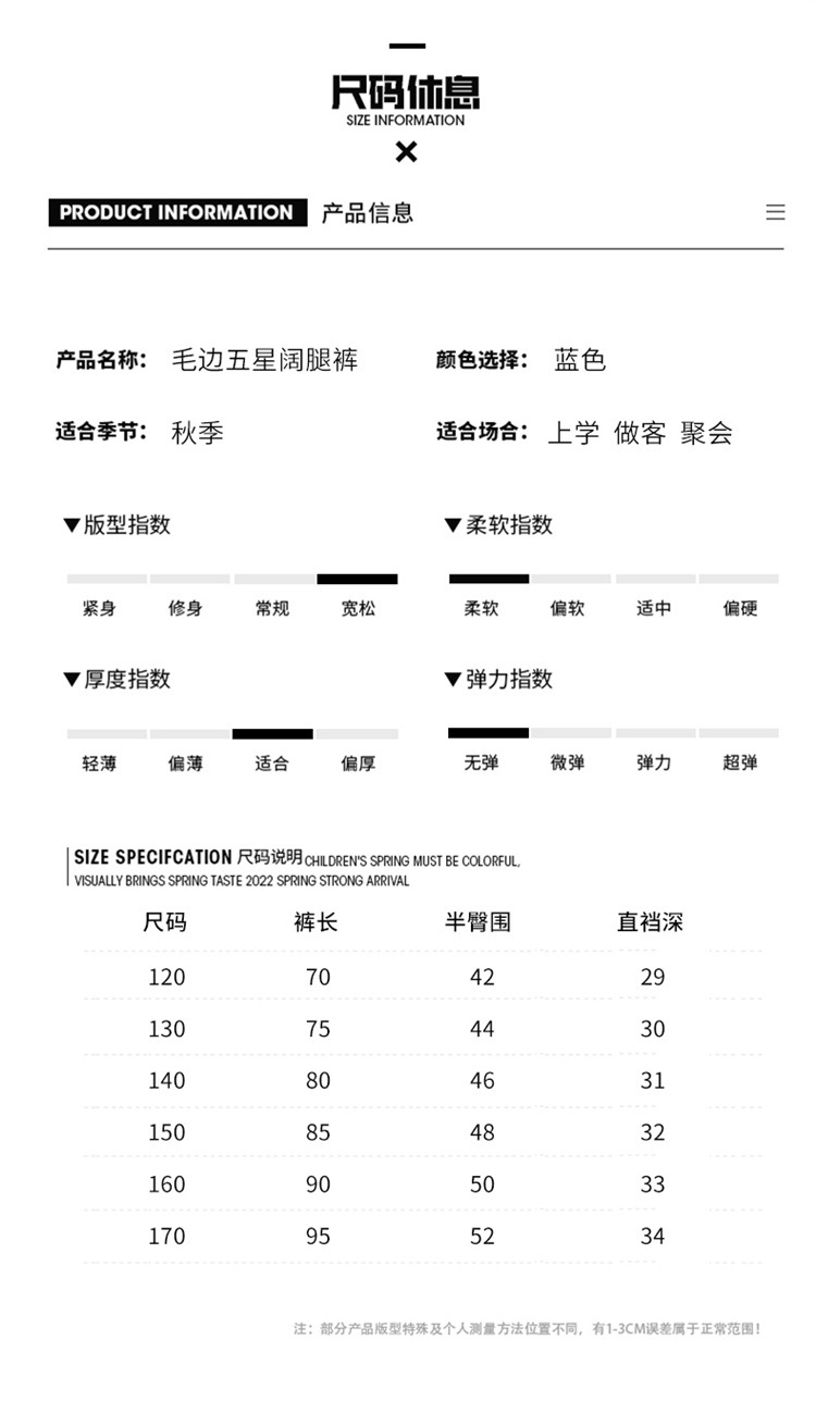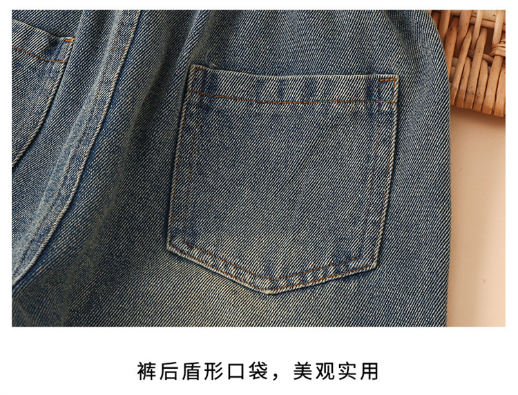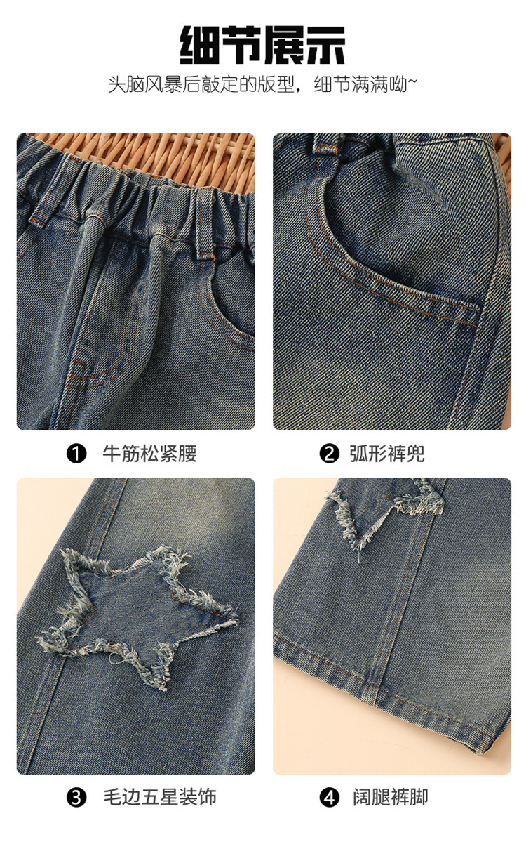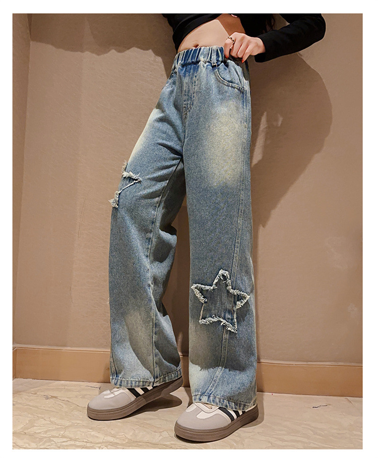 소녀 봄 청바지 2024 새로운 중형 및 대형 어린이 서양식 소녀 봄 복고풍 다섯개 별 데님 넓은 다리 바지스토어 가기