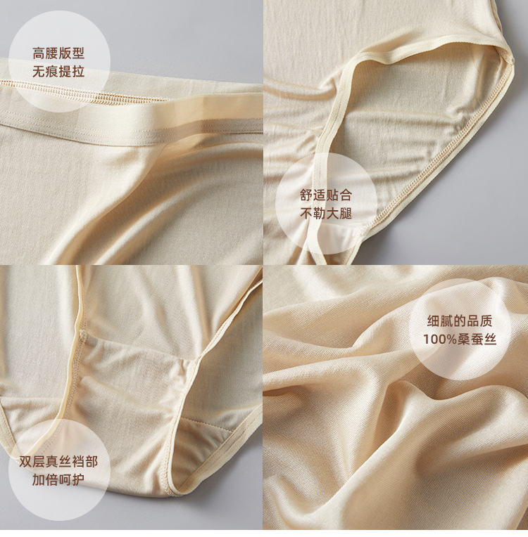 하이 엔드 뽕나무 실크 여성용 삼각형 반바지 100% 실크 단색 편안한 통기성 높은 허리 칼집 속옷스토어 가기