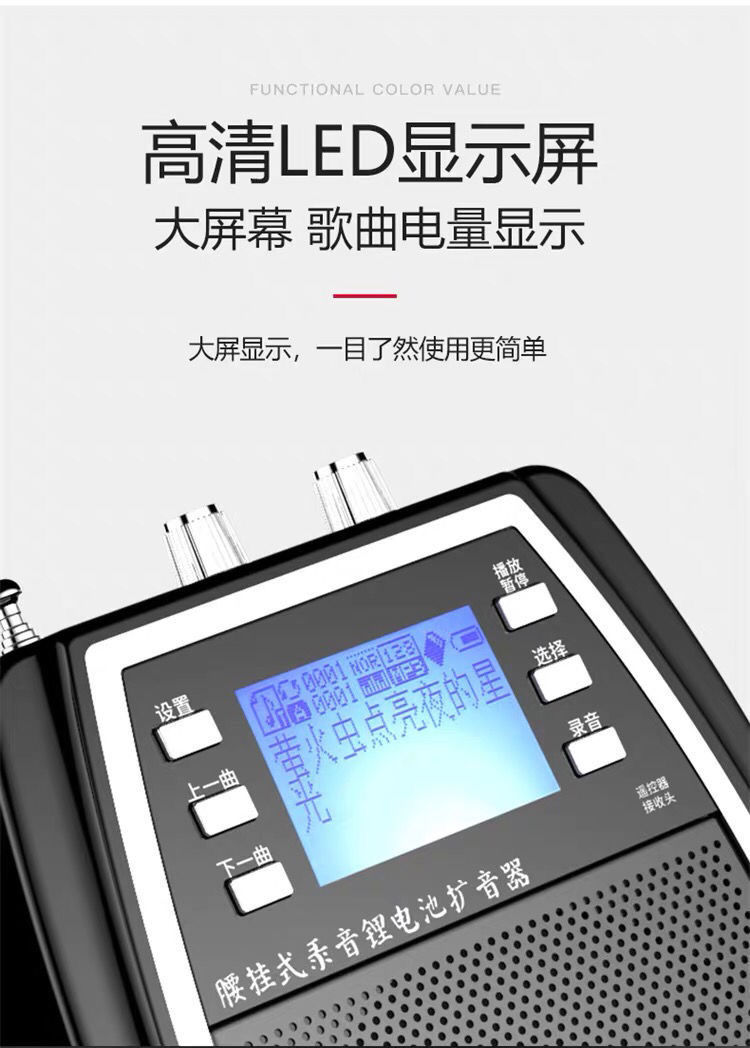 Shanhe SH-750S 블루투스 마이크 허리 교수형 U 디스크 TF 카드 녹음 가사 디스플레이 원격 제어 라디오