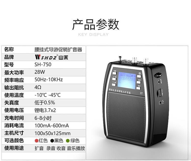 Shanhe SH-750S 블루투스 마이크 허리 교수형 U 디스크 TF 카드 녹음 가사 디스플레이 원격 제어 라디오스토어 가기