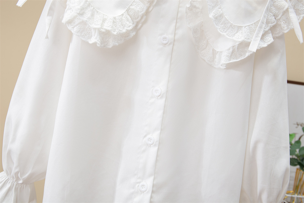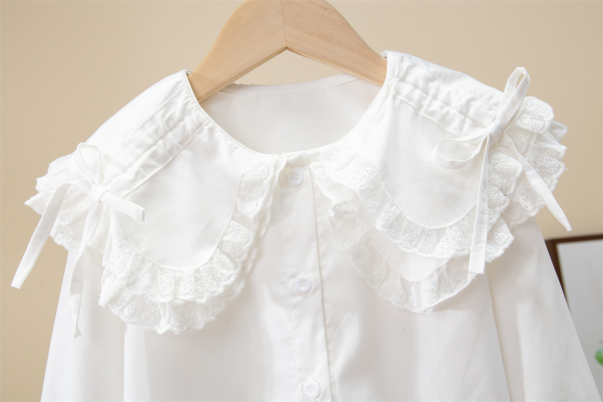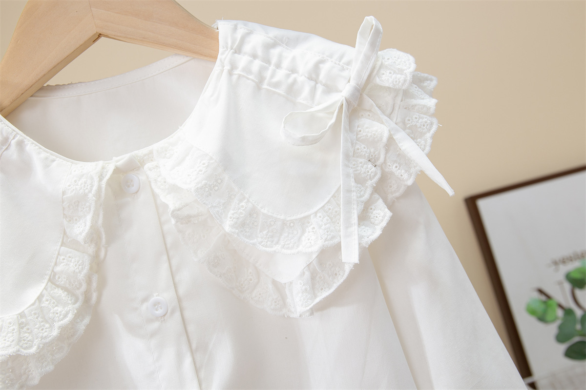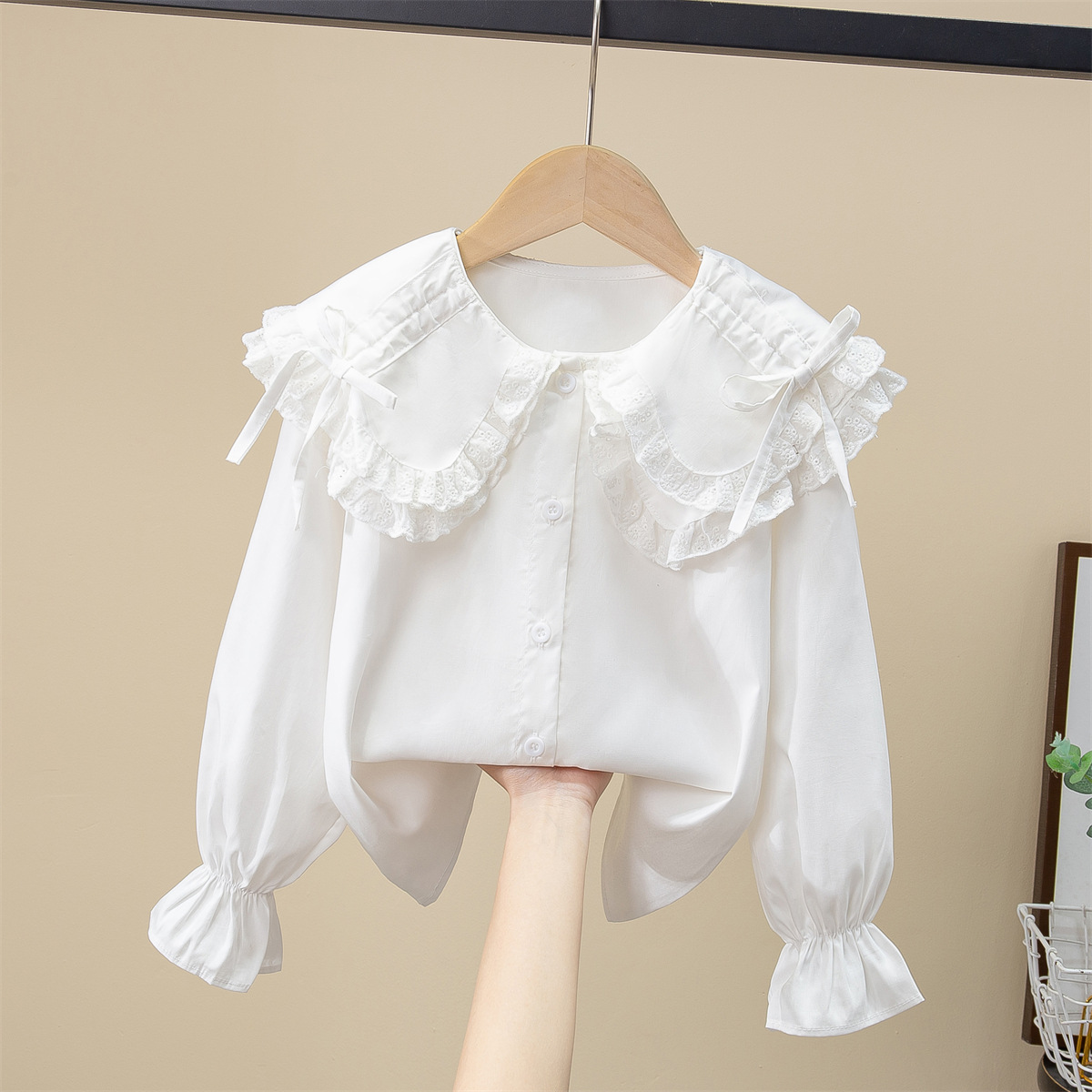 소녀 셔츠 봄과 가을 새로운 어린이 옷깃 흰색면 긴팔 셔츠 봄 소녀 캐주얼 탑