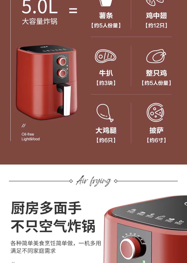 양지 에어 프라이어 가정용 지능형 다기능 전기 프라이어 전기 베이킹 냄비 전기 오븐 대용량 공기 전기 프라이어