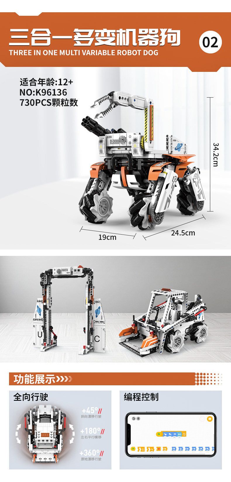 • 6136 업그레이드 3 대 1 변경 로봇 개 [730 입자]