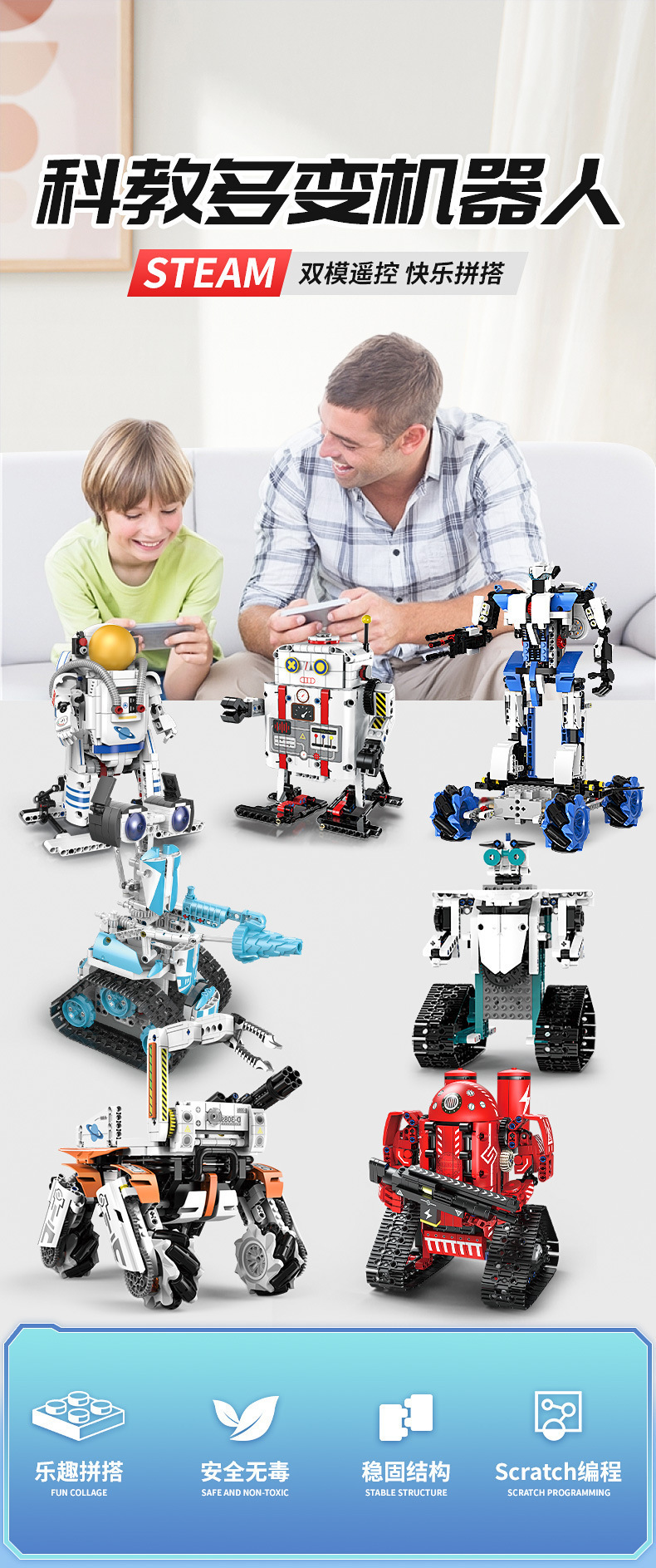 작은 입자 계발 프로그래밍 가능한 가변 로봇 전기 과학 및 교육 장난감 모델과 호환되는 이중 원격 제어 조립 건물 블록스토어 가기
