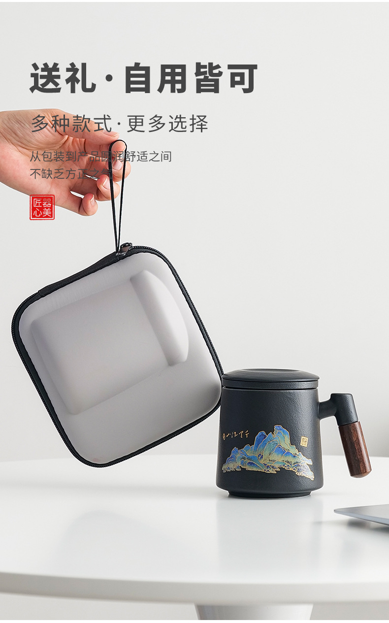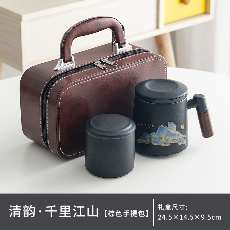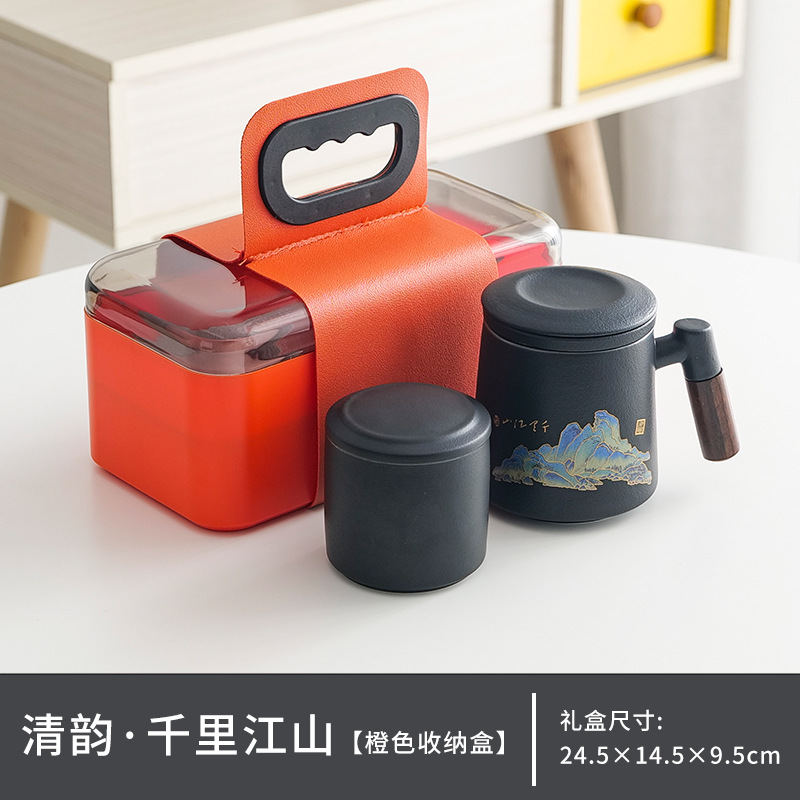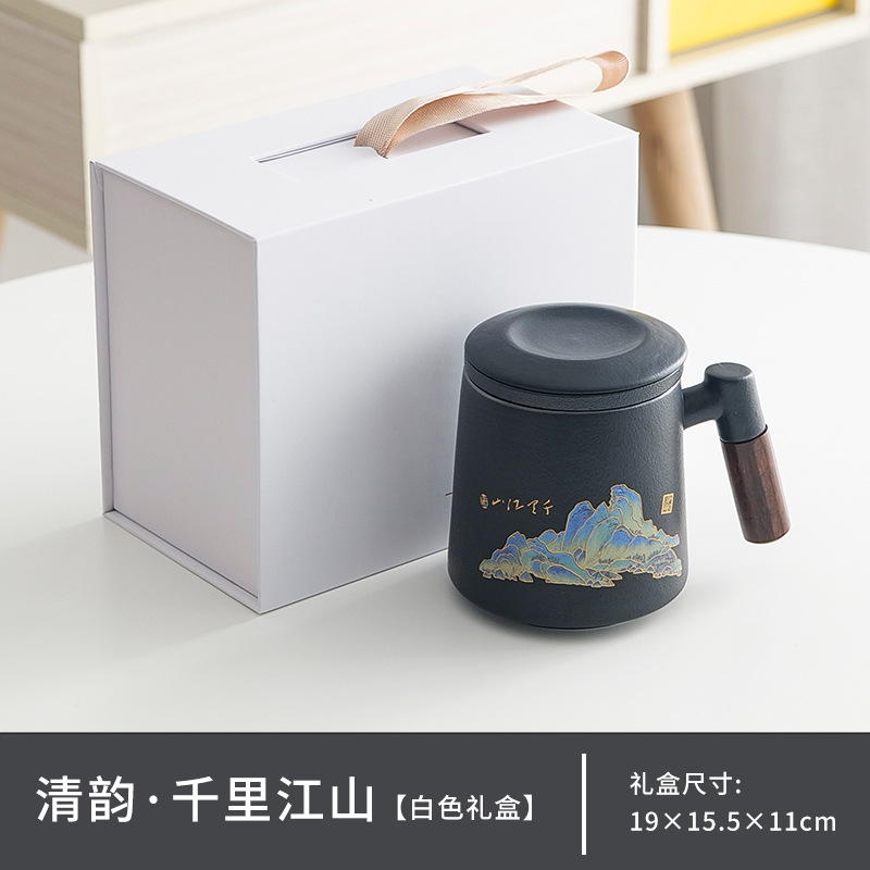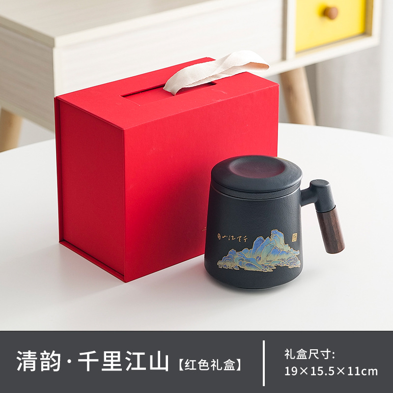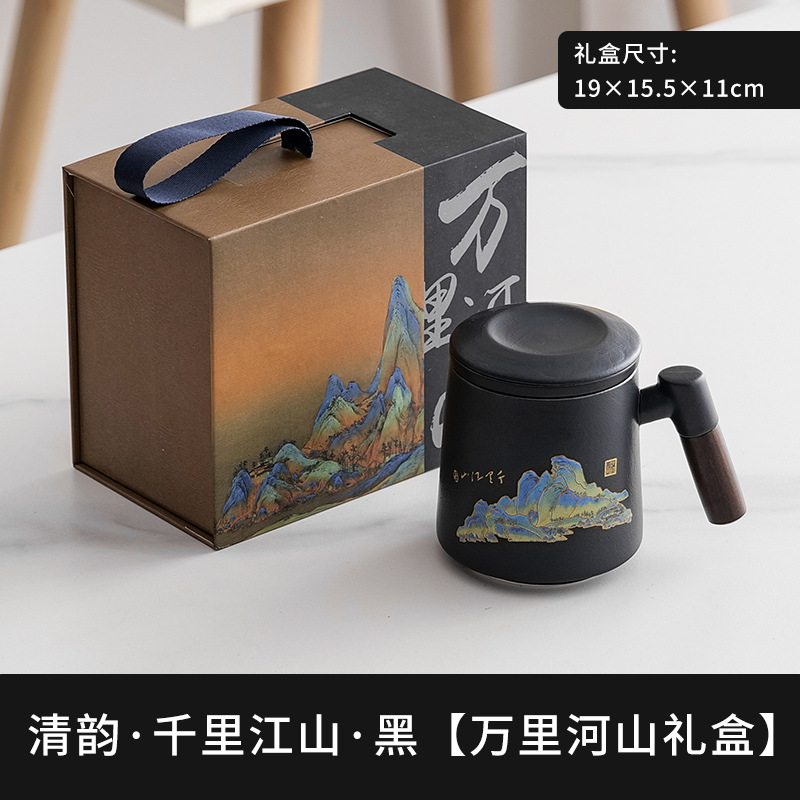 • Qingyun 오피스 컵 Qianli Jiangshan (블랙)-Wanli Heshan 선물 상자