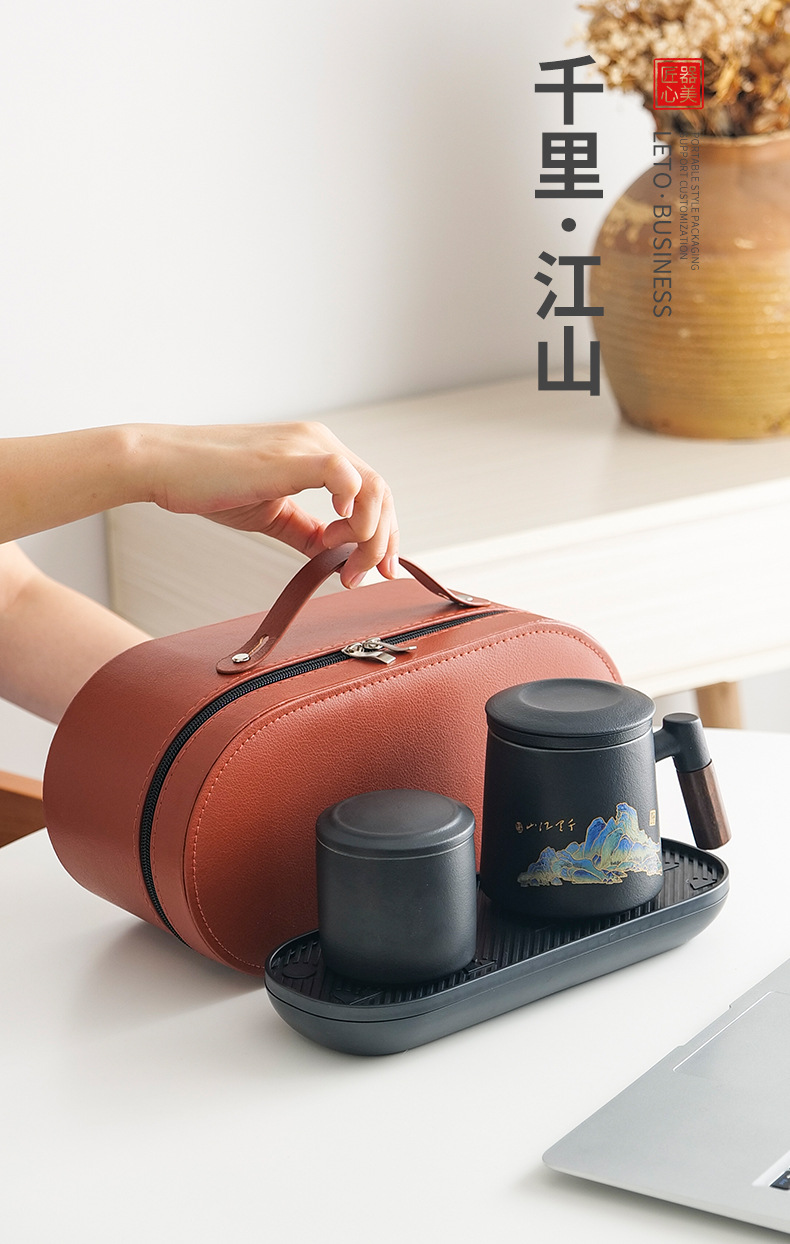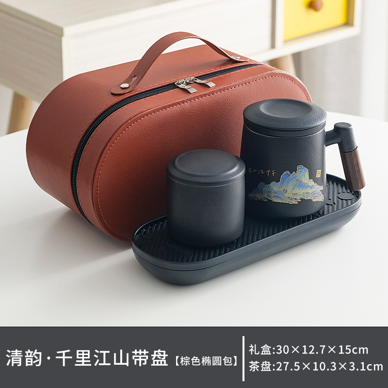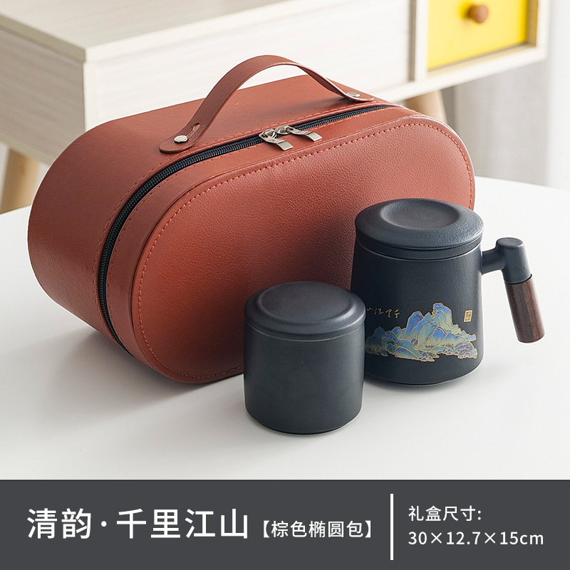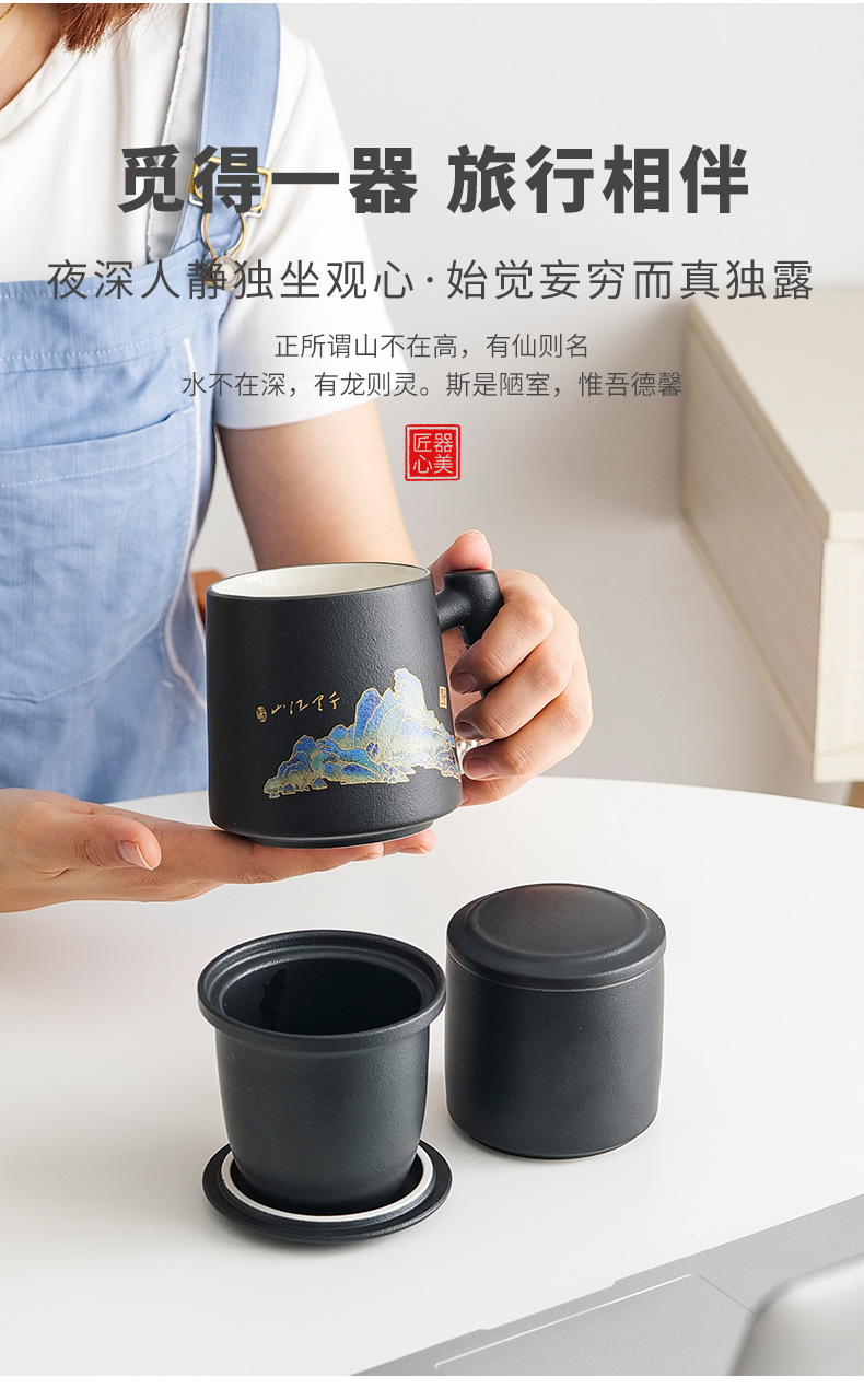 • Qingyun 오피스 컵 Qianli Jiangshan (블랙)-Wanli Heshan 선물 상자